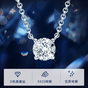 | 正品1克拉莫桑钻石项链女不掉色s925纯银经典四爪吊坠锁骨链批发 |