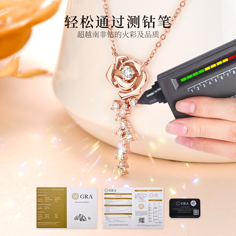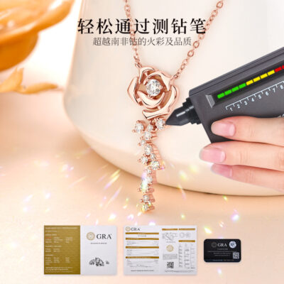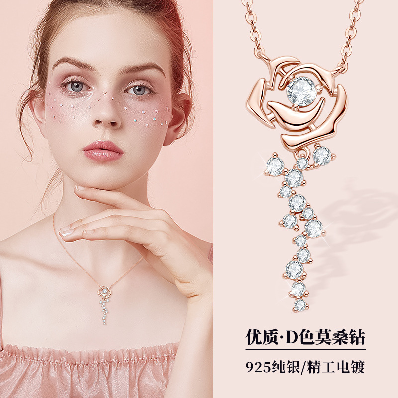 | 外贸2023新款小众百搭ins风玫瑰金项链莫桑钻石925纯银锁骨链批发 |