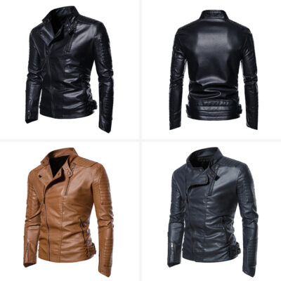 Ngoại Thương Amazon Âu Mỹ Nam Áo Khoác Da Nam Trẻ Trung Cổ Đứng Punk Nam Xe Máy Áo Khoác Da PU