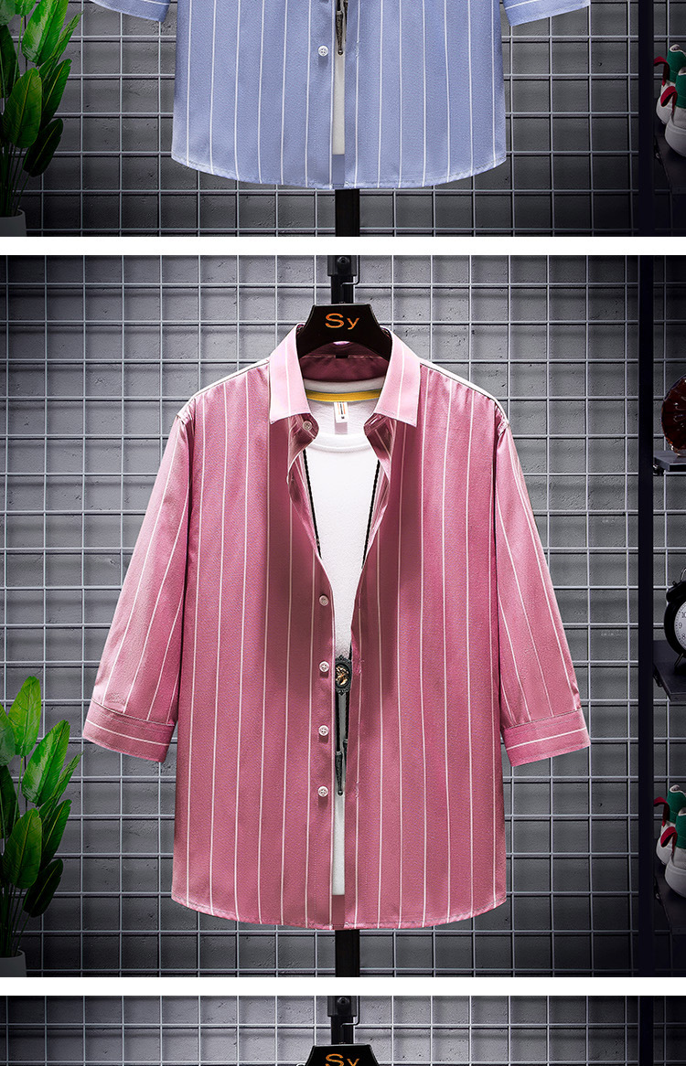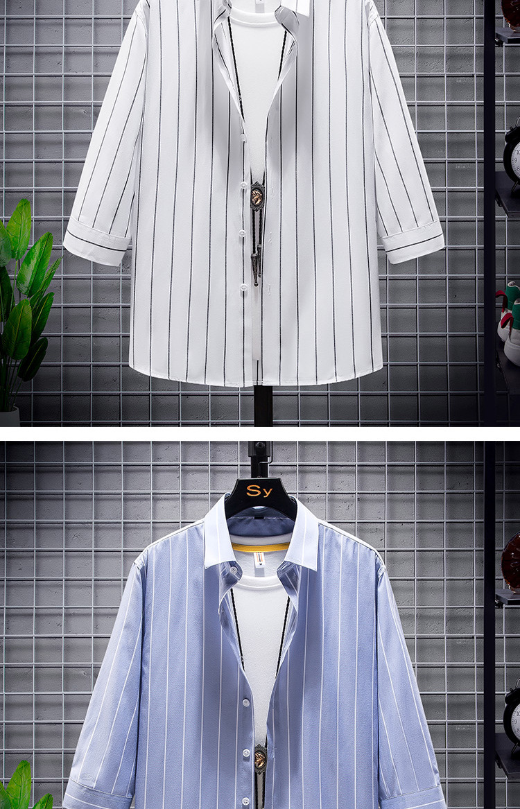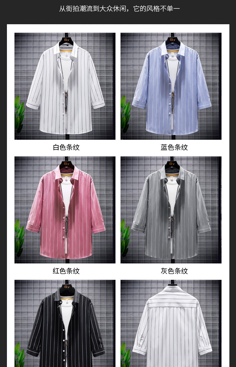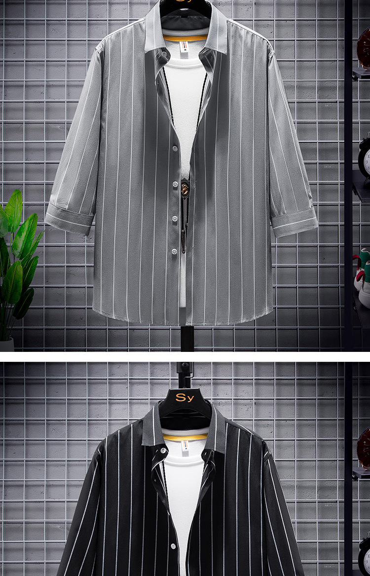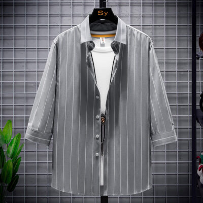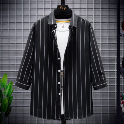 Ngoại Thương Áo Sơ Mi Nam 2023 Mới Áo Sơ Mi Sọc Nam Ngắn Tay Cổ Ba Điểm Size Lớn Quần Áo Nam Bán Buôn