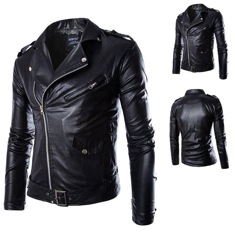 Ngoại Thương Hàn Quốc Mới Đầu Máy Da Mỏng Áo Khoác Da Nam Áo Khoác Thời Trang Anh Da PU Nam Y012