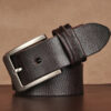 头层牛皮腰带新款纯铜色牛皮自动扣 合金扣二层牛皮年轻人男式裤腰带 工厂直供超纤皮自动扣男士裤腰带