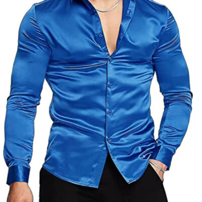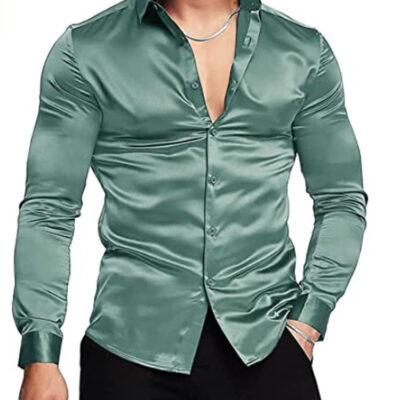 Ngoại Thương Mùa Thu 2022 Ga Độc Lập Amazon Phong Cách Hot Âu Mỹ Thời Trang Nam Sáng Bóng Màu Trơn Áo Sơ Mi Dạ Hội