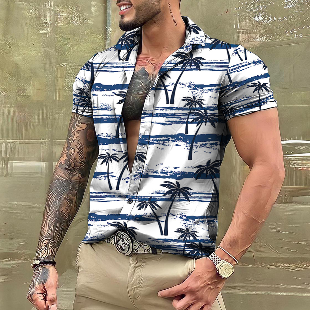 Ngoại thương xuất khẩu 2023 nam Hawaii sơ mi ngắn tay nam có ve áo sơ mi ngày lễ áo thun hàng đầu