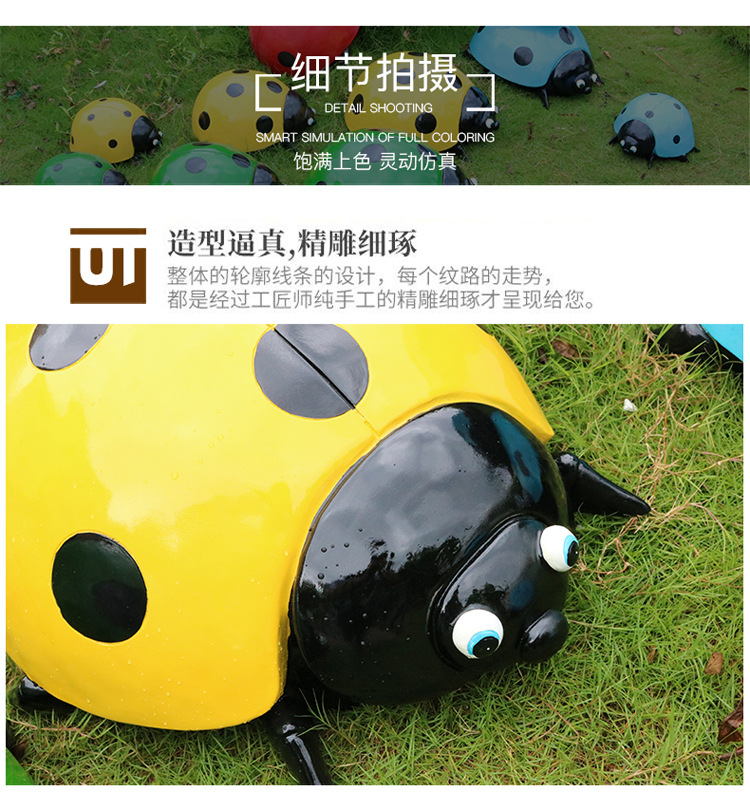 Ngoài trời bảy sao bọ rùa sợi thủy tinh điêu khắc mô phỏng vườn thú côn trùng cảnh quan rừng mẫu vật sân mẫu giáo đồ trang trí là lựa chọn lý tưởng cho không gian công cộng, sân vườn hoặc khu đô thị. Sản phẩm giúp nâng cao hình ảnh chuyên nghiệp và sạch đẹp cho môi trường sống.
