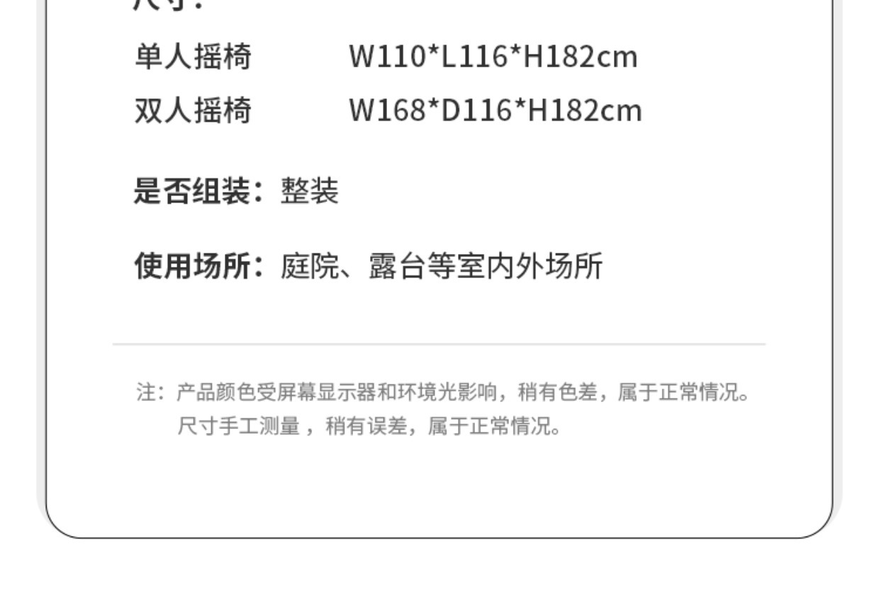 Thương hiệu: Urban Garden of Eden Mã sản phẩm: SCS8191704210 Màu sắc: Xích đu đơn/Đu đôi/Đu đôi Danh mục sản phẩm: Ghế treo Mẫu mã: Xích đu ngoài trời Thông số kỹ thuật: Xích đu đơn, Xích đu đôi Có hoặc không có tay vịn: Có hoặc không Giao hàng tận nơi: Dù nó được chuyển đến tầng dưới Cung cấp dịch vụ lắp đặt: Không Cho dù người nộp thuế chung: Có Chất liệu: Kim loại Khối lượng: W110*L116*H182cm, W168*L116*H182cm Có thể bị từ chối Thực hiện: Có Cho dù xuất khẩu xuyên biên giới Nguồn cung cấp đặc biệt: Không Phong cách: Phong cách Bắc Âu Khung: Khung kim loại Không gian áp dụng: Ngoài trời, sân trong, sân vườn, biệt thự, v.v.
