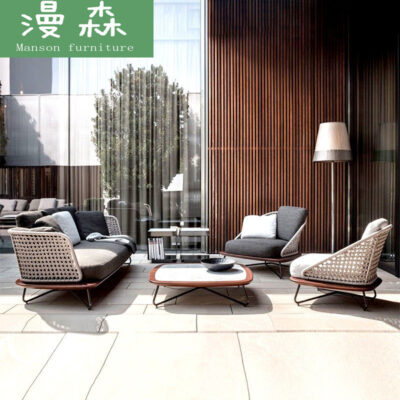 Ngoài Trời Mây Ghế Sofa Bắc Âu Gỗ Chắc Chắn Ngoài Trời Ban Công Sân Vườn Ngoài Trời Đôi Mây Sofa Chống Thấm Nước Sân Nội Thất