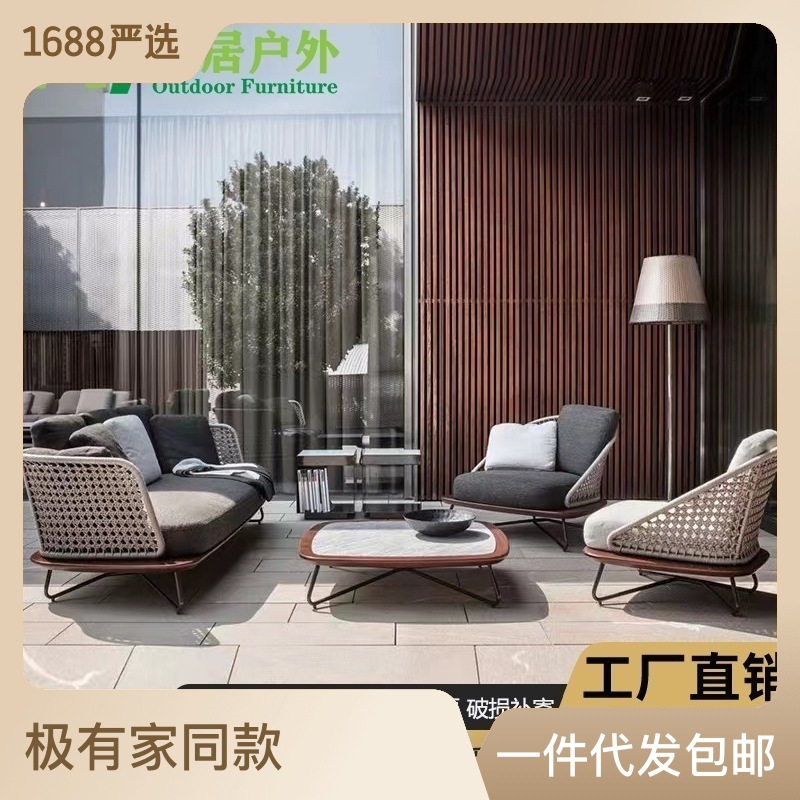 Ngoài trời mây sofa bàn cà phê kết hợp ban công ngoài trời sân bàn ghế ba món sân thượng giải trí nội thất ghế mây