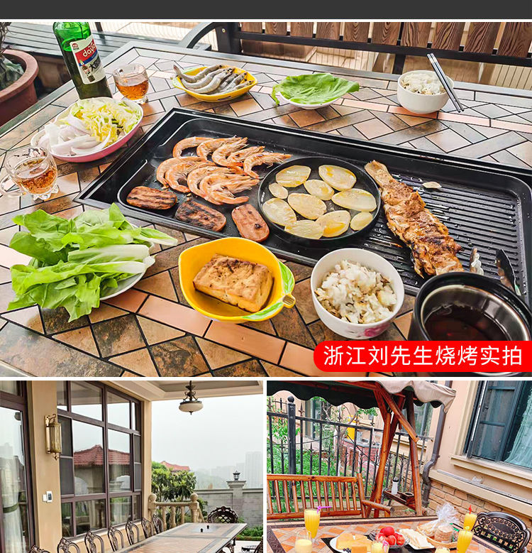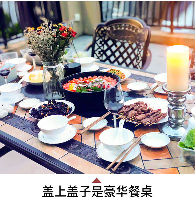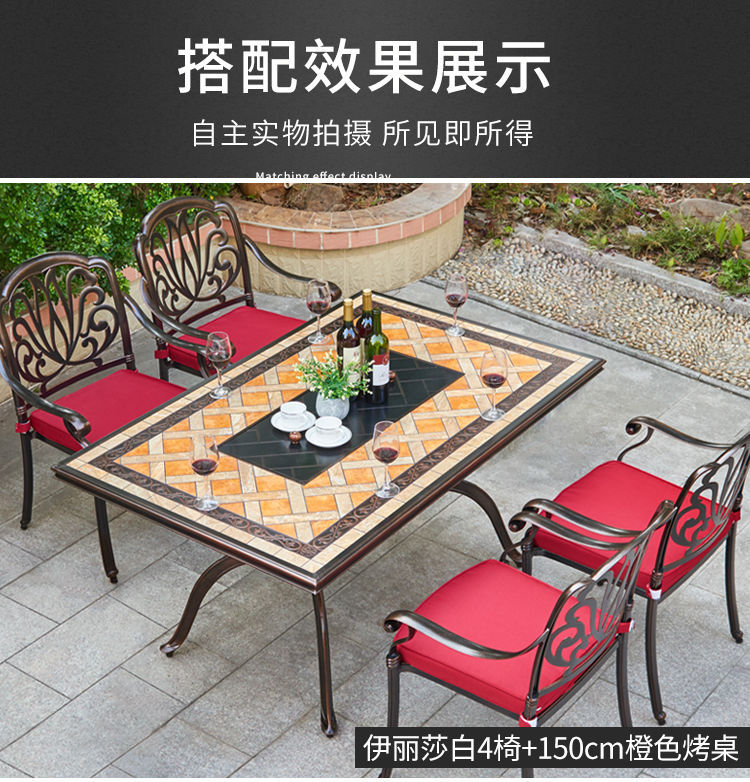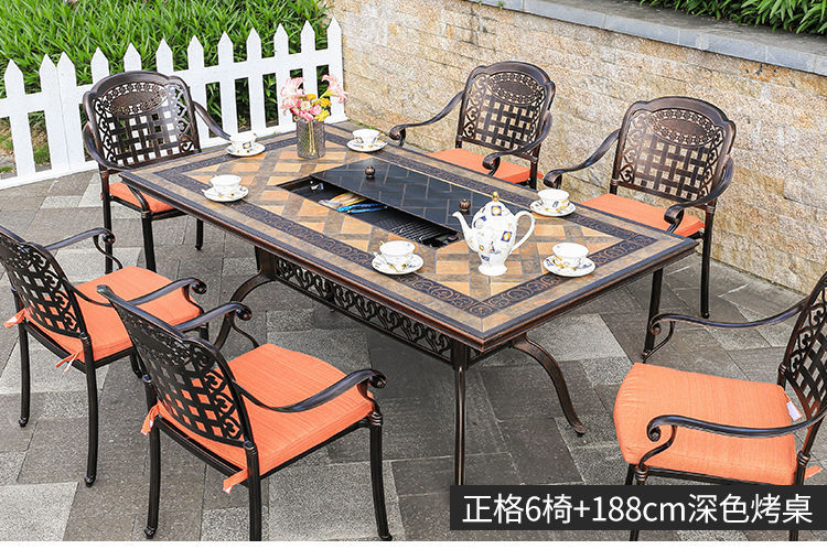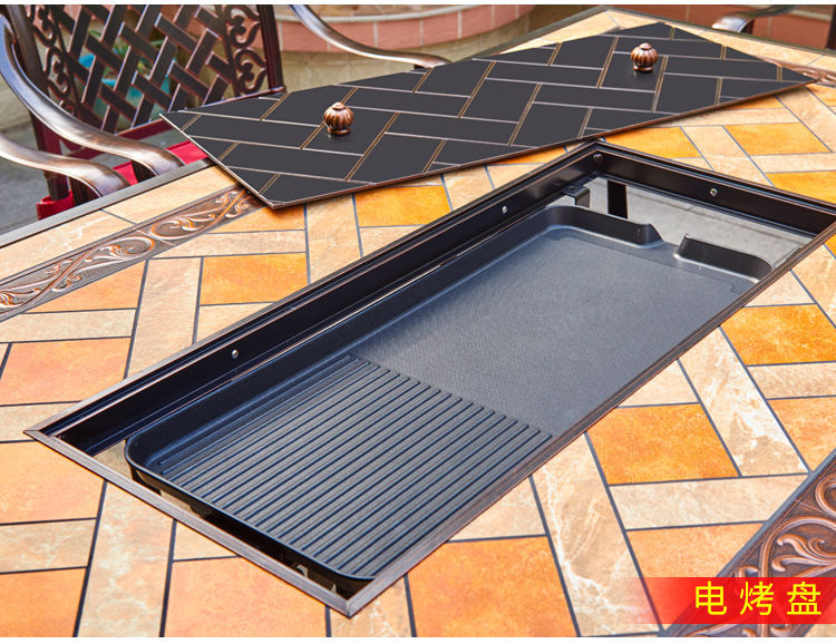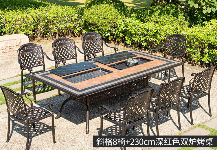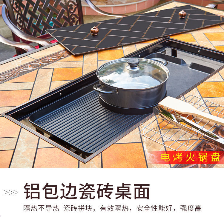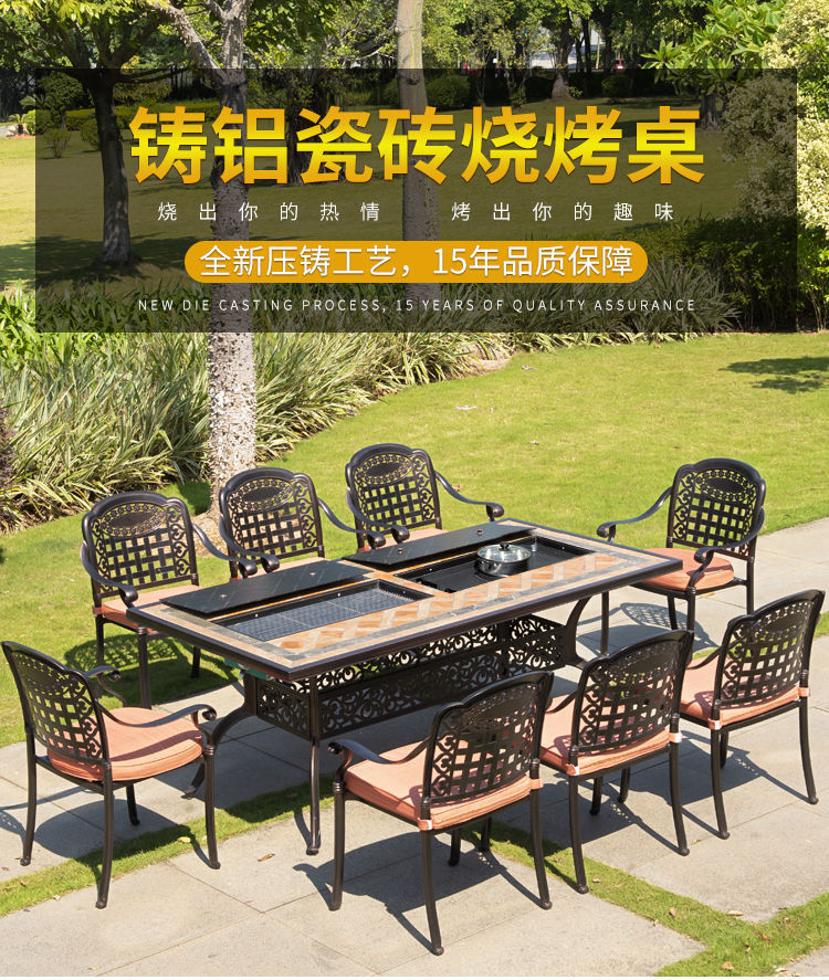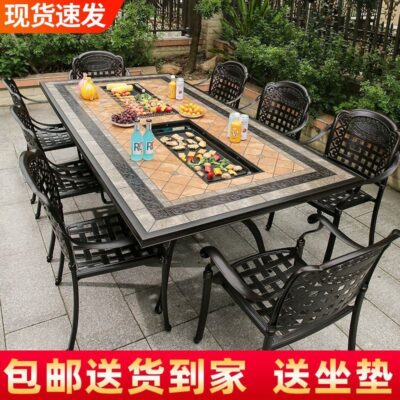 Ngoài trời nhôm đúc bàn ăn nướng sân thượng biệt thự vườn sắt ngoài trời giải trí nhà xoay bàn ghế nướng điện