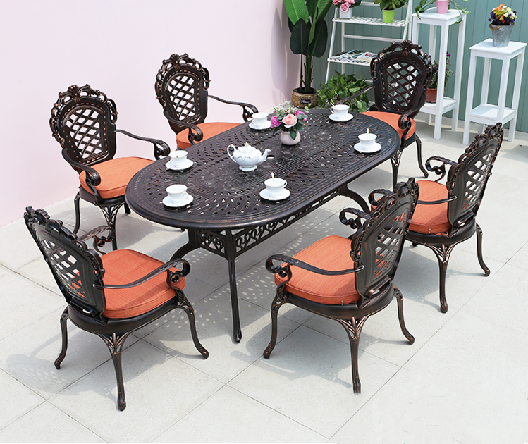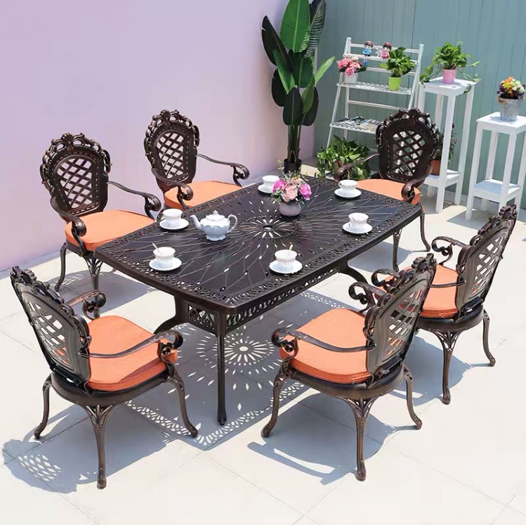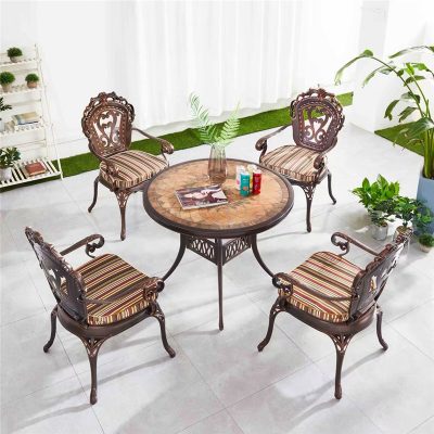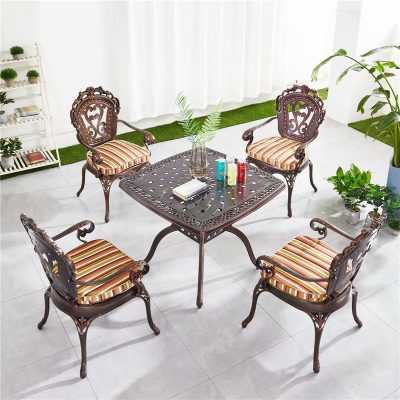 Ngoài trời sân vườn ngoài trời nhôm đúc bàn ghế nướng ngoài trời ban công ngoài trời biệt thự ngoài trời bàn ghế nhôm mỹ bộ ba món 5 món được thiết kế để tạo điểm nhấn cho khu vực sân vườn, ban công hoặc không gian ngoài trời.
