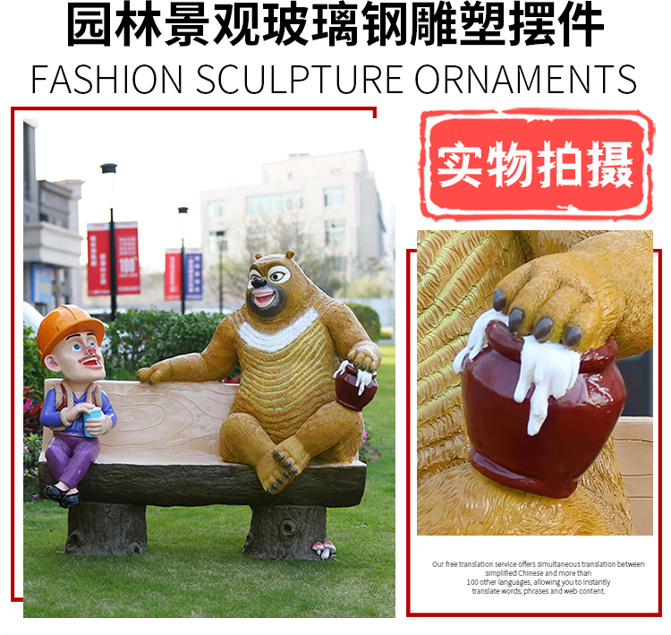 Ngoài trời sợi thủy tinh gấu ám ảnh điêu khắc gấu lớn hai khu vườn cảnh quan trung tâm mua sắm trang trí nhà trẻ trang trí sàn đồ trang trí