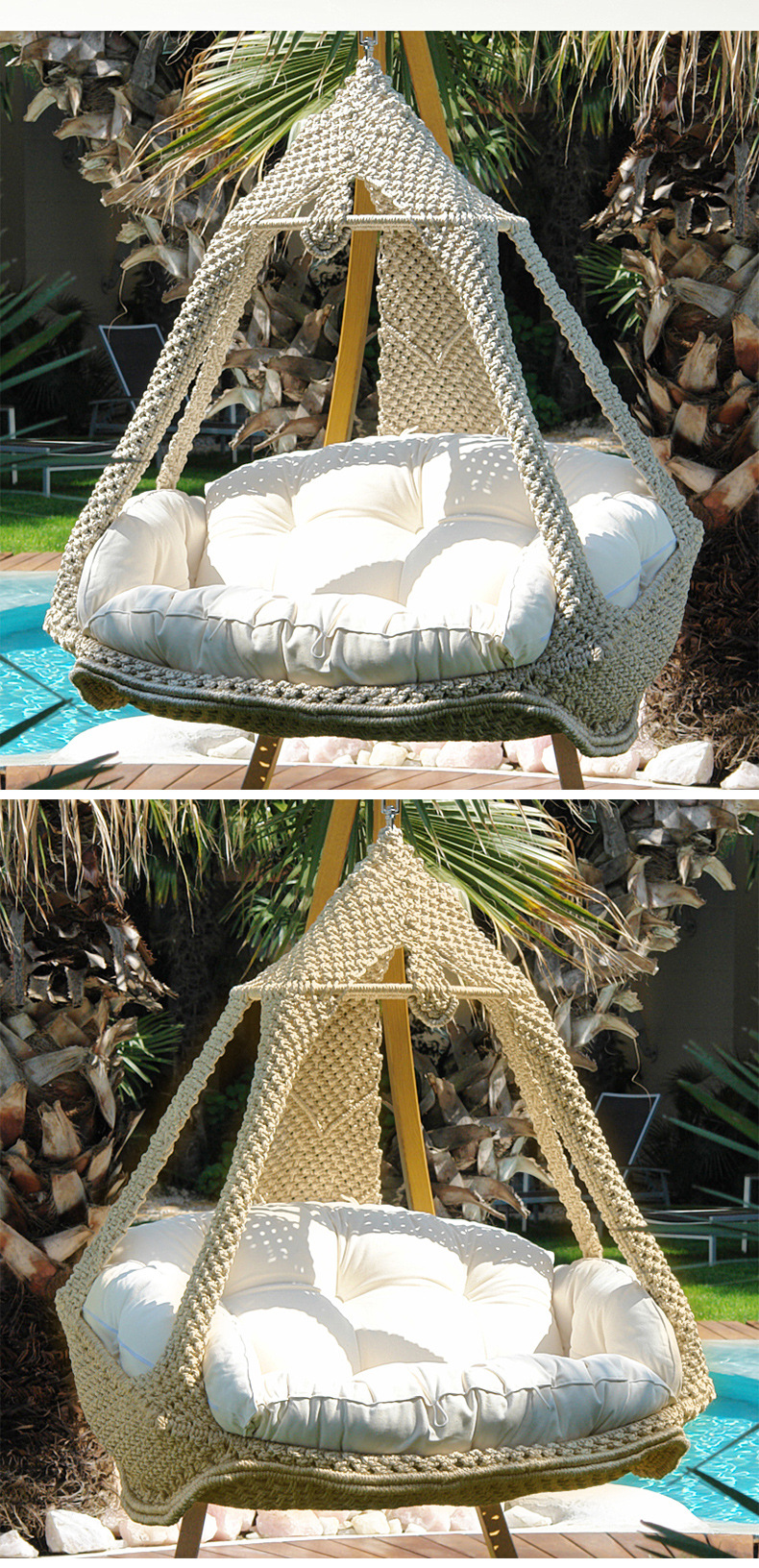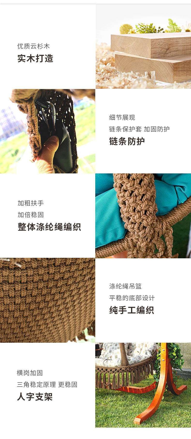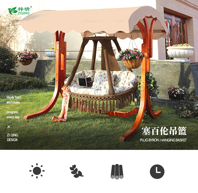 Ngoài trời vân sam gỗ chắc chắn xích đu ghế bập bênh phong cách Bắc Âu giỏ treo vườn sân xích đu giải trí lớn giỏ treo bằng bông polyester