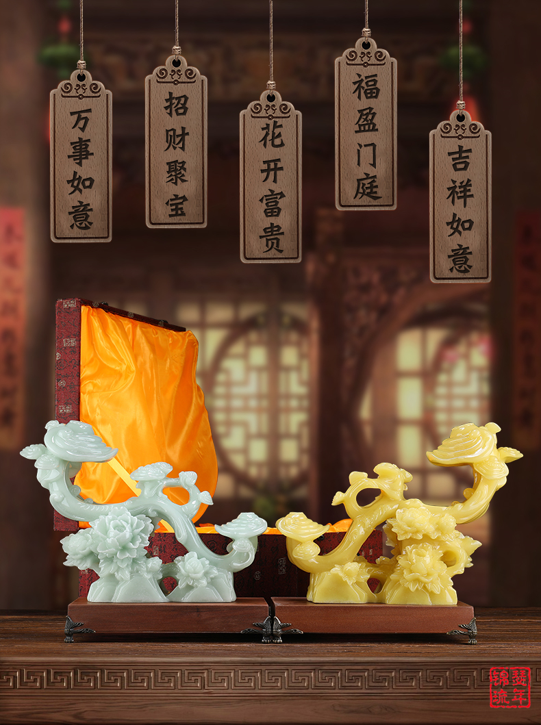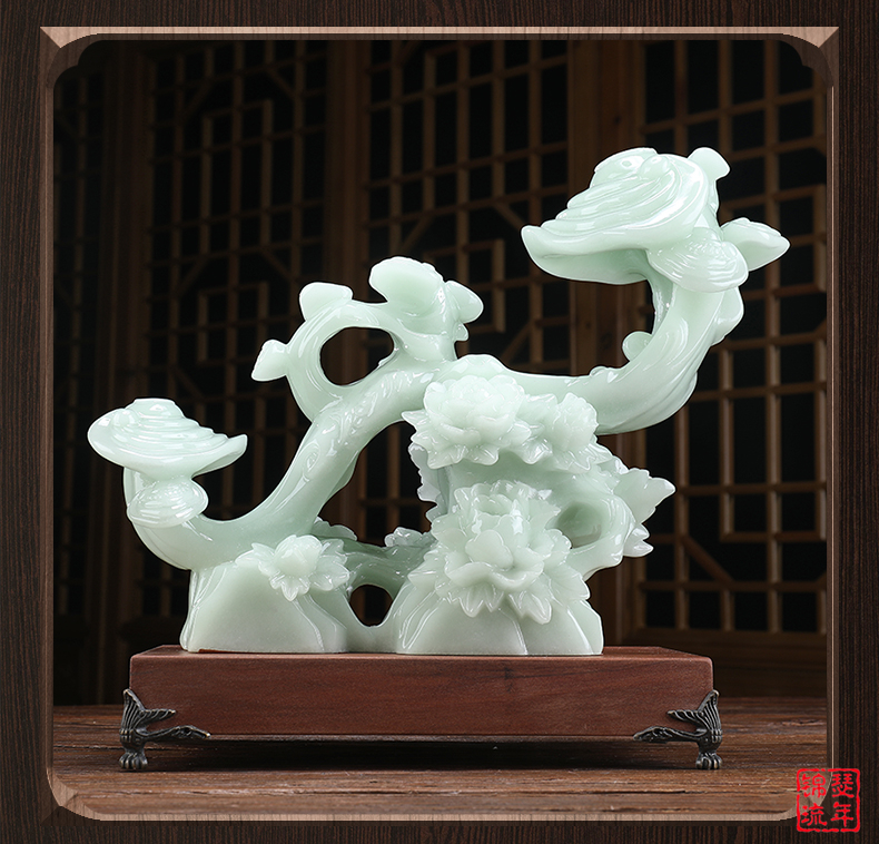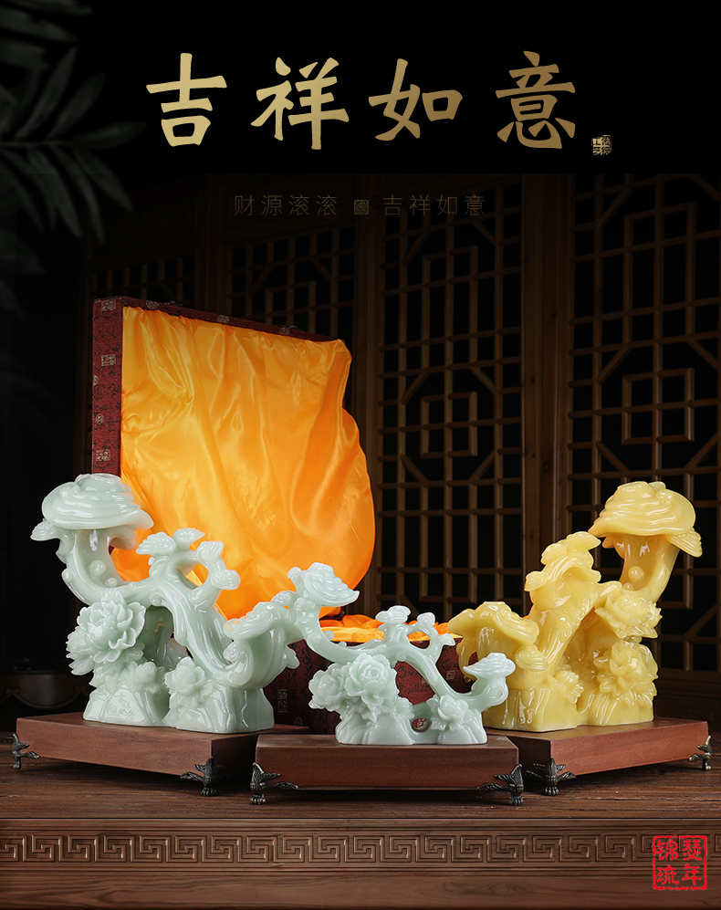 Ngọc Ruyi đồ trang trí bằng ngọc bích phụ kiện gia đình phòng khách văn phòng tủ rượu hiên nhà may mắn tân gia quà tặng khai trương quà tặng