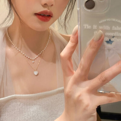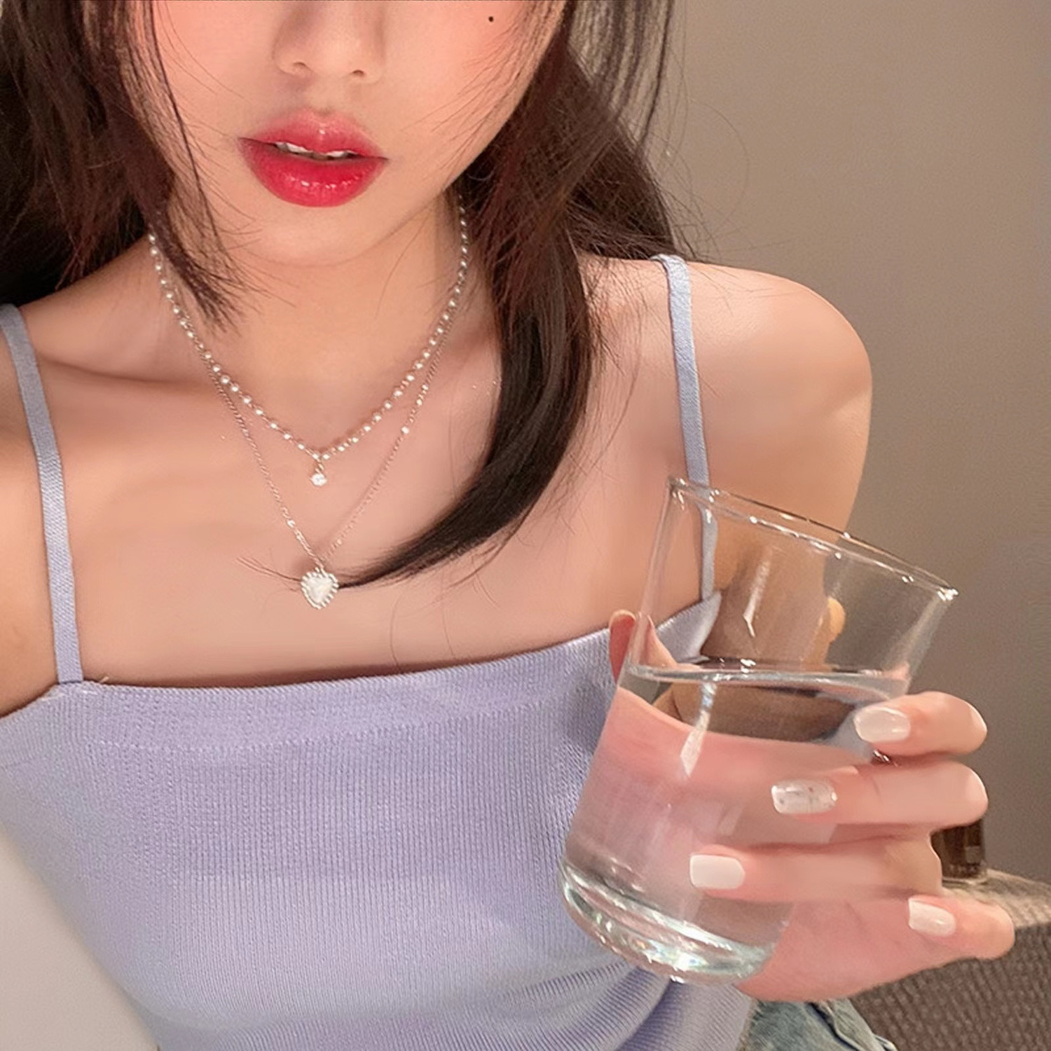Ngọc Trai 2 Lớp Vòng Cổ Trái Tim Ánh Sáng Nữ Sang Trọng Thích Hợp Nhẹ Nhàng Chuỗi Xương Đòn Xếp Chồng Lên Nhau Vòng Cổ Kim Cương Giả Phụ Kiện Cao Cấp