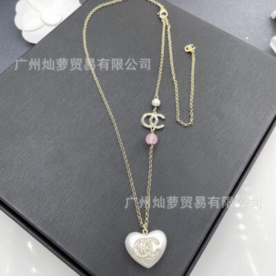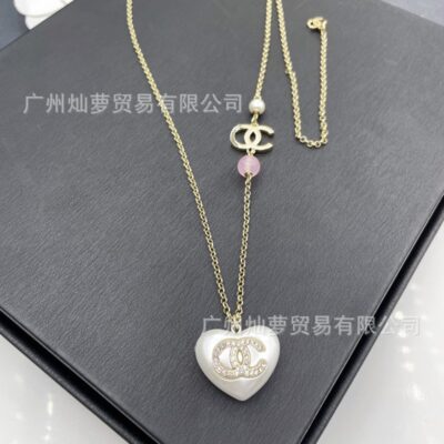 Ngọc trai tình yêu retro mới của Xiaohongshu với vòng cổ đôi cc kim cương ánh sáng sang trọng nhỏ hương thơm nổi tiếng vòng cổ xương đòn siêu cổ tích