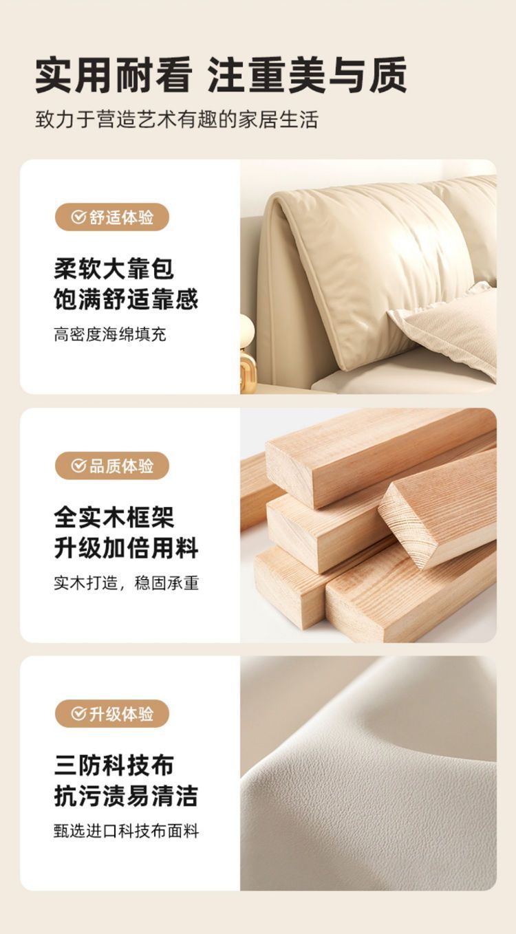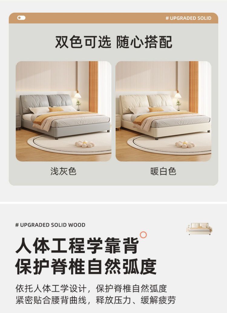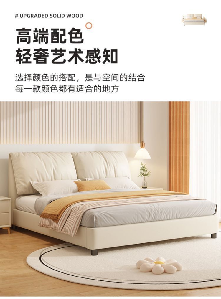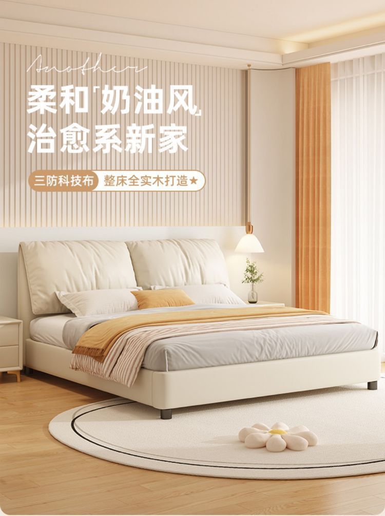 Ngôi nhà đơn giản hiện đại Phòng ngủ chính 1,5 căn hộ nhỏ nhẹ nhàng sang trọng Giường cưới 1,2m Công nghệ vải đôi Giường gỗ nguyên khối