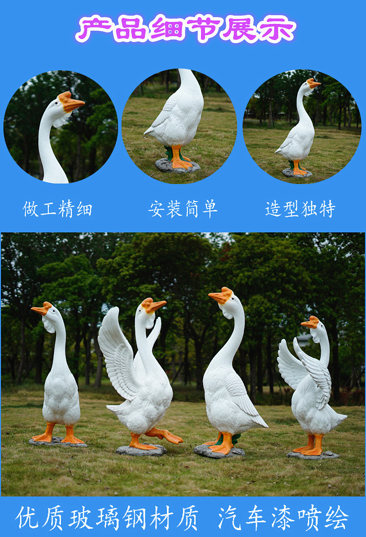 Ngỗng trang trí ngoài trời sợi thủy tinh gia cố nhựa mô phỏng động vật mô hình vườn cảnh quan điêu khắc sân trong ao trang trí bãi cỏ