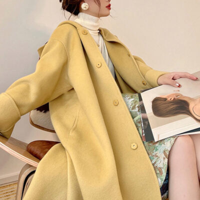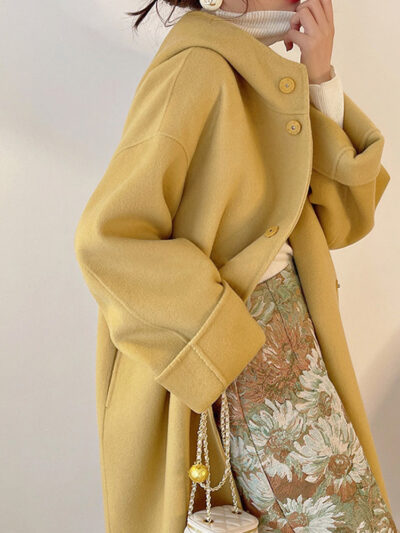 Hoa văn: Màu trơn Độ dày: Trung bình Tên vải: Cashmere Màu sắc: Vàng Loại sản phẩm: Áo khoác len nữ Vị trí: Một hàng Nhiều nút Loại tay áo: Tay áo thông thường Thành phần vải chính: Cashmere Phong cách may mặc: Dù phiên bản Hàn Quốc Nguồn cung cấp xuyên biên giới: Không có phần/Mùa: Mùa đông 2023 Loại cổ áo: Có mũ Chiều dài tay áo: Dài tay Dù có cổ áo Lông thú Cổ áo: Không có cổ áo lông thú Các yếu tố phổ biến: Kiểu túi: Phong cách đi lại