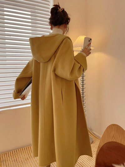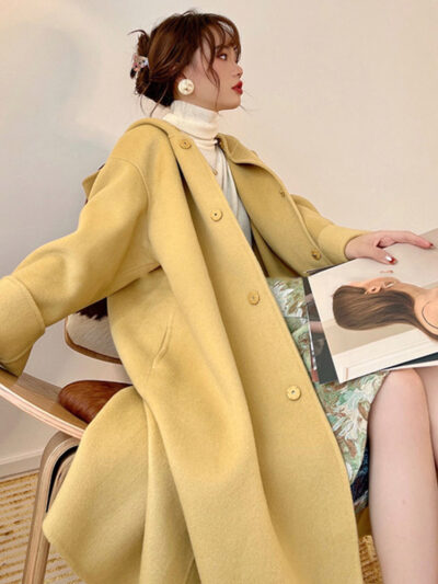 Ngỗng vàng 2 mặt áo khoác cashmere người nhỏ cao cấp dài thời trang áo khoác len nữ mùa đông 21069