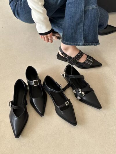 Ngọt ngào kiểu Anh mũi nhọn mát mẻ Giày Mary Jane phiên bản Hàn Quốc miệng nông Giày đơn kiểu Pháp mùa xuân 2023 giày da mới giày nữ phong cách retro