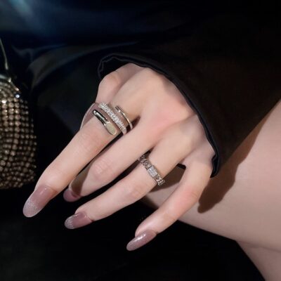 Ngọt ngào và mát mẻ chuỗi zircon vi khảm nhẫn nữ dây chuyền nhiều lớp tinh tế bạc S925 mở xếp chồng lên nhau nhẫn ngón trỏ nhẫn thủy triều