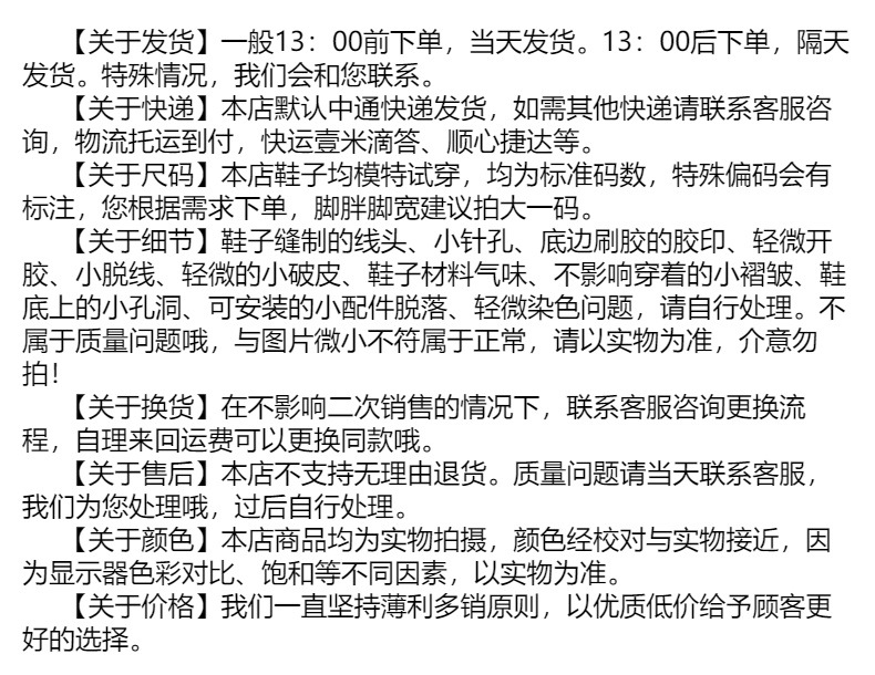 Hoa văn: Màu trơn Phong cách gót chân: Gót thấp Loại sản phẩm: Spot Chất liệu bên trong: Lưới Thể thao áp dụng: Phổ thông Ngoại thương: Có Màu sắc: Trắng / Đen / Khaki / Khaki Danh mục sản phẩm: Giày ngư dân Chiều cao trên: Cổ thấp Còn hàng: Chiều cao gót: Gót thấp (1-3CM) Hình dạng gót: Phẳng Kích thước gót: 35/36/37/38/39/40/40 Quy trình đế: Đúc khuôn Độ sâu lỗ giày: Nông (dưới 7cm) Chất liệu đế: Cao su Quy trình vật liệu : ép phun có dành cho xuất khẩu xuyên biên giới hay không Nguồn cung cấp độc quyền: không có yếu tố phổ biến: hoa / rỗng / chỉ khâu / kiểu chỉ khâu: lưới báo cáo kiểm tra chất lượng giày: không Chất liệu: PU Cảnh áp dụng: Hàng ngày Hình dạng ngón chân: Đầu tròn Nhanh nhất thời gian giao hàng: 1 Chất liệu trên: Lưới Phương pháp mặc: Tay áo/giày bên ngoài Giới tính áp dụng: Nữ Tính năng da: Da láng Loại hàng: Toàn bộ Đơn hàng Nhóm tuổi áp dụng: Người lớn Chức năng: Thoáng khí Mùa trong năm (thời gian thị trường): Mùa xuân 2023 Mùa phù hợp: Mùa hè/ Xuân/Thu/Thu Phong cách: Trưởng thành Thời gian giao hàng mới nhất: 3 ngày