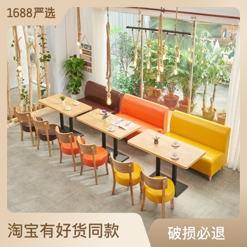 Người nổi tiếng Internet cửa hàng trà sữa bàn ăn và ghế kết hợp đơn giản quán cà phê tráng miệng ăn nhẹ bánh hamburger thẻ ghế sofa gỗ rắn thương mại