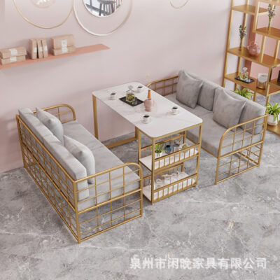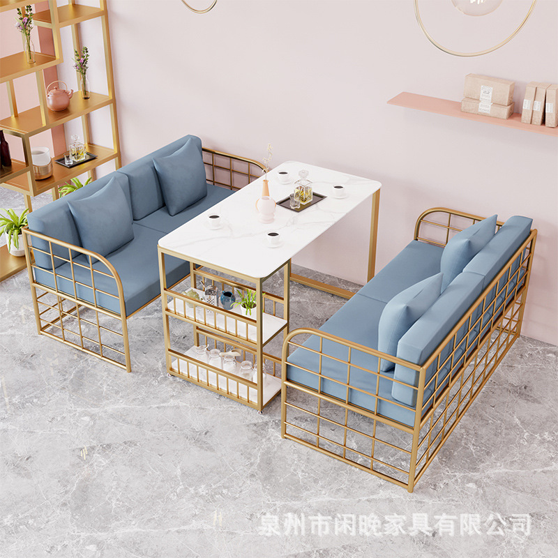 Người nổi tiếng Internet quán cà phê quán trà sữa giải trí sofa bàn ghế kết hợp phong cách ins cửa hàng bánh tráng miệng ghế sofa đôi
