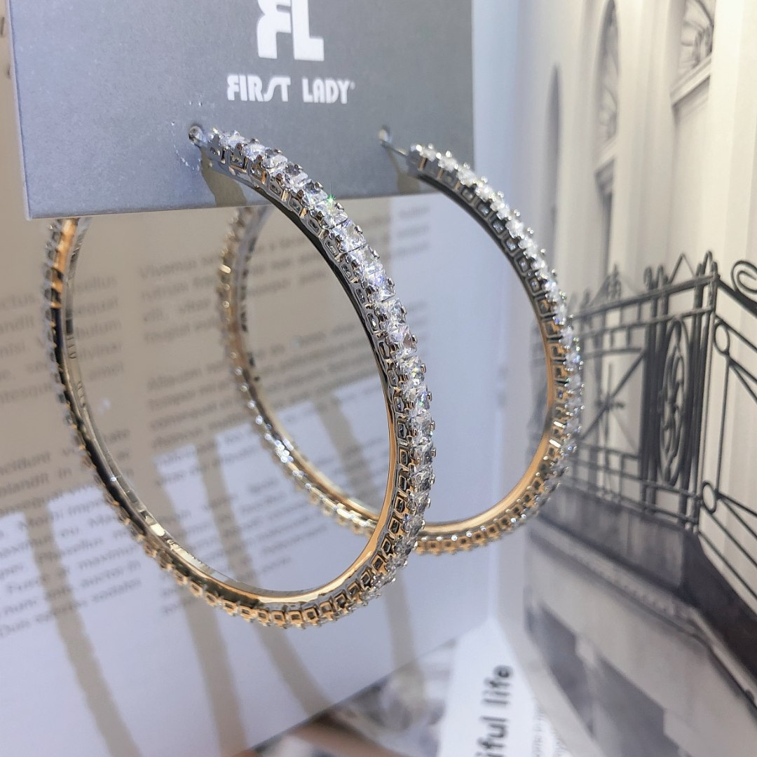 Người nổi tiếng trên mạng với cùng phong cách bông tai vòng lớn siêu flash cá tính Âu Mỹ đính đá thời trang khí chất bông tai nữ thích hợp mặt tròn mỏng