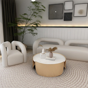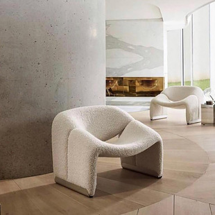北欧轻奢布艺沙发现代客厅弧形沙发设计师美容服装店羊羔绒沙发椅