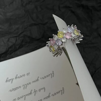 Người yêu sa ngã đá quý màu thiết kế hốc có thể điều chỉnh Đẹp sang trọng nhẫn zircon nữ cao cấp