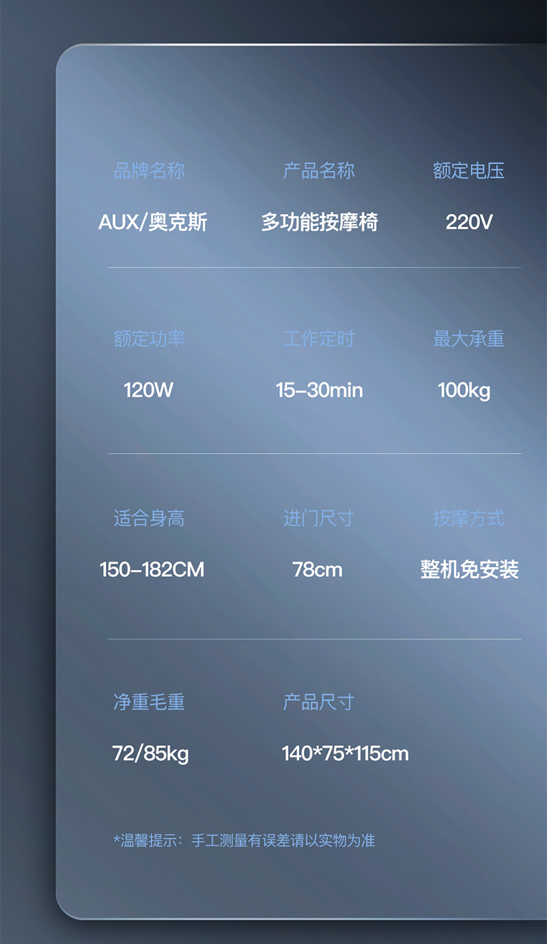 1.AUX奥克斯按摩椅直属源头生产工厂;
