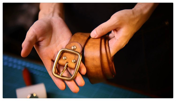 Nguồn nhà sản xuất thắt lưng nam phong cách retro Mỹ phù hợp với mọi lứa tuổi giản dị bằng đồng thau nguyên chất lớp trên cùng thắt lưng ngoài trời bằng da bò