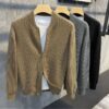 Nguồn sỉ xưởng dệt kim xuất khẩu áo sơ mi nam đáy thu đông nam cổ tròn cá tính màu trơn nam kim tuyến