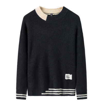 Nguồn sỉ xưởng dệt kim xuất khẩu áo sơ mi nam đáy thu đông nam cổ tròn cá tính màu trơn nam kim tuyến