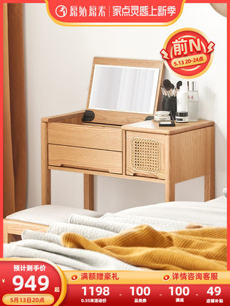 Nguyên bản hoàn toàn bằng gỗ nguyên khối Bàn trang điểm gương lật Bàn trang điểm bàn trang điểm gỗ sồi tối giản kiểu Bắc Âu H6051