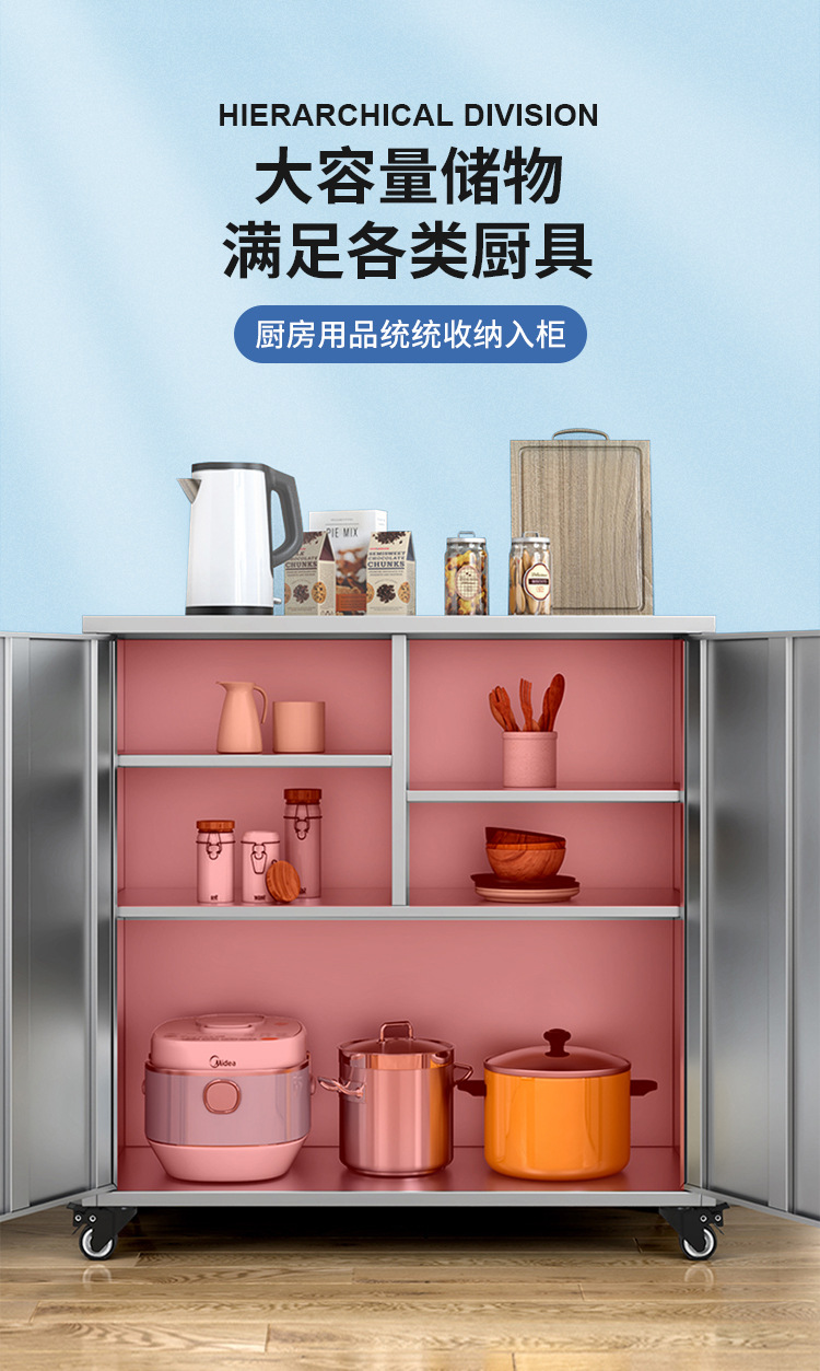 Nhà bếp bằng thép không gỉ thay đồ nhiều lớp tủ nhà đa năng tủ phụ tủ bảo quản nồi tủ bảo quản tủ