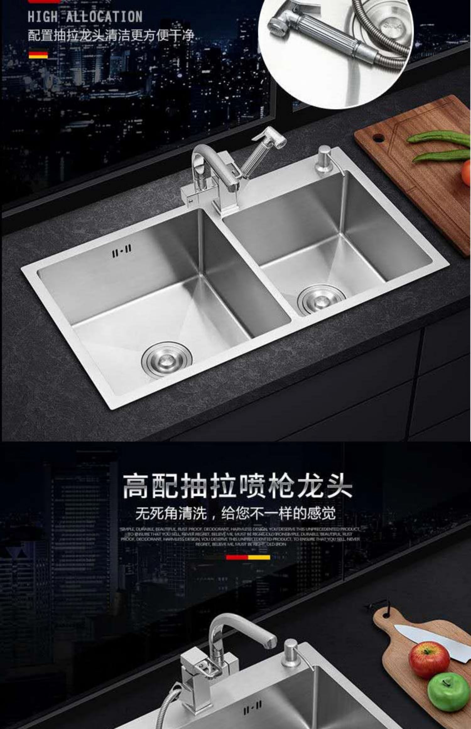 Sản phẩm nổi bật với các tính năng: Nhà Bếp Bồn Rửa Inox 304 Tay Bể Rửa Bát Dày Thực Phẩm Đôi Khe Cắm Rau Chậu Xô Có Giá Để Dao. Quý khách có nhu cầu mua Chậu rửa nhập khẩu vui lòng liên hệ với chúng tôi để được tư vấn hỗ trợ. Dịch vụ mua hàng Trung Quốc sẽ hỗ trợ quý khách mua hàng từ nhà cung cấp và giao tới tận tay quý khách hàng..