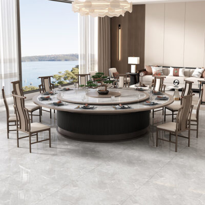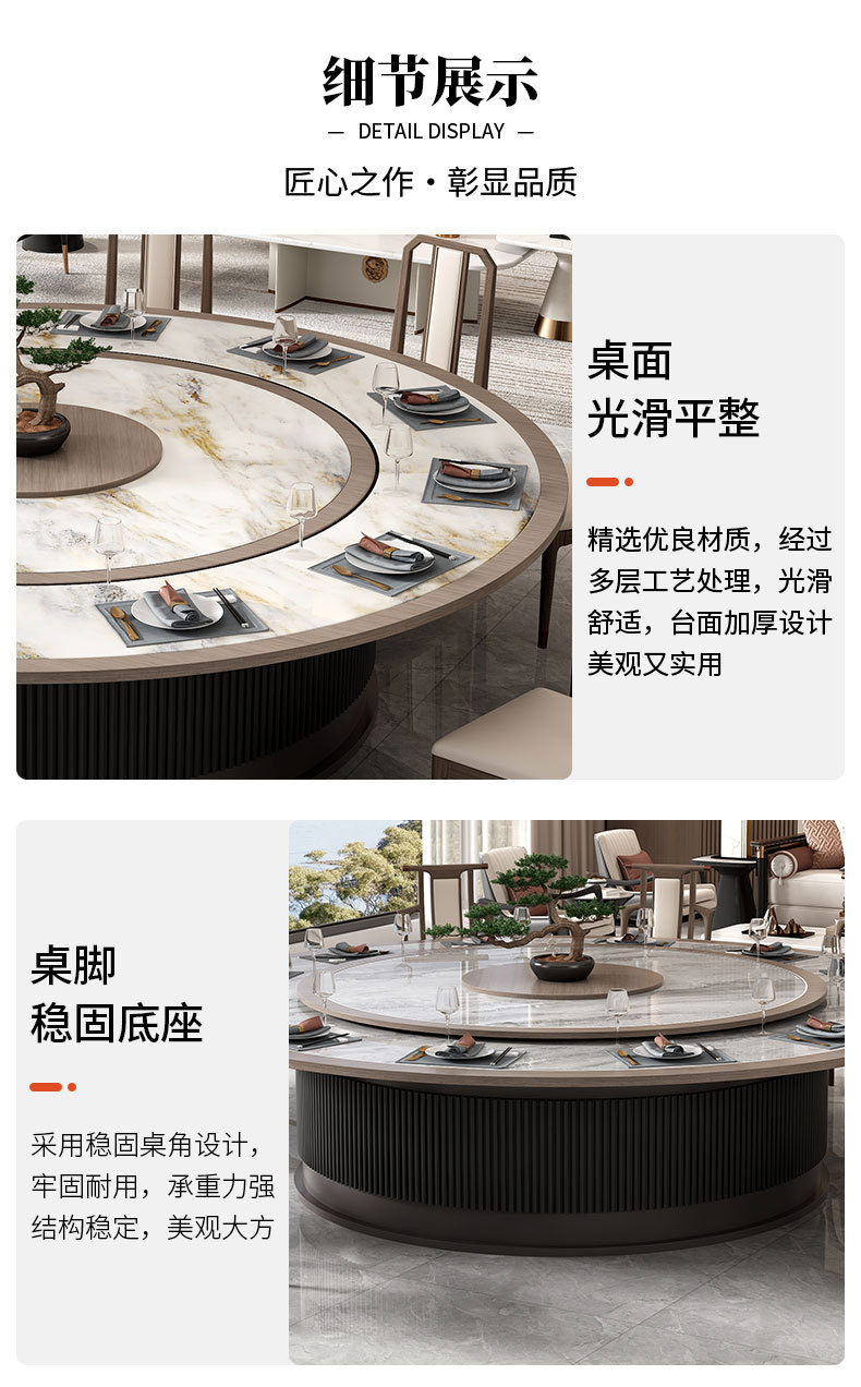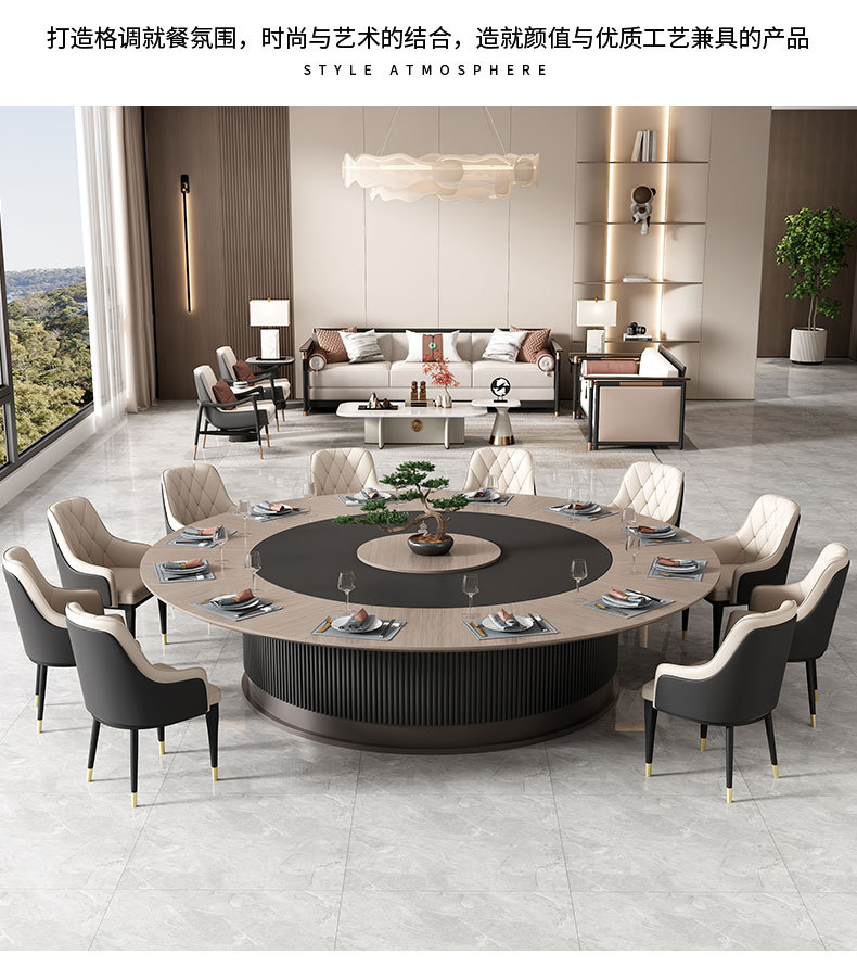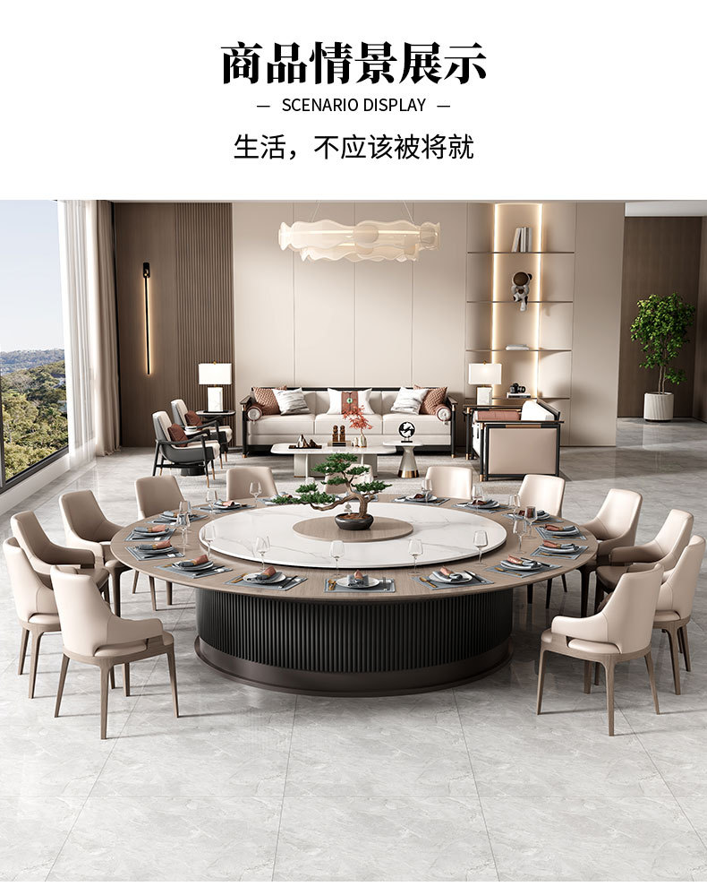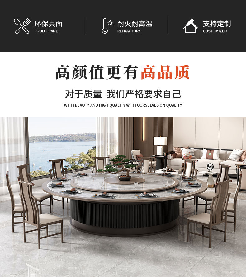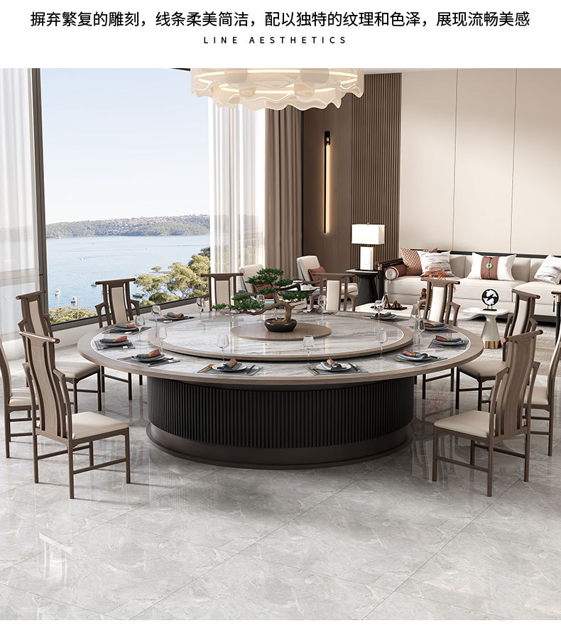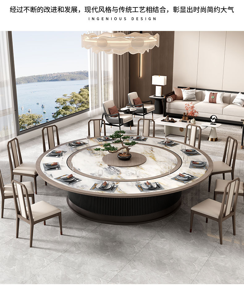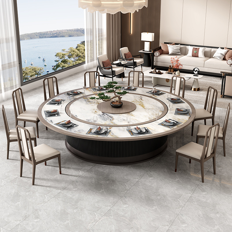 Nhà hàng cao cấp phòng riêng xoay tự động bàn tròn lớn khách sạn câu lạc bộ phòng riêng bàn ăn lớn đĩa đá bàn lẩu khách sạn bàn xoay bữa ăn