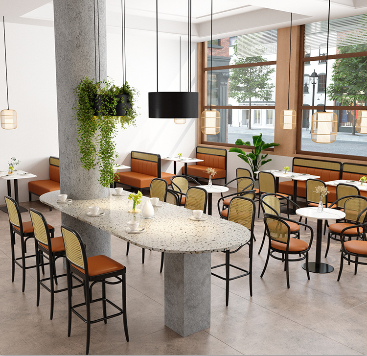 Nhà hàng chè đan mây đan ghế thẻ quán trà sữa quán cà phê bàn ghế kết hợp nhà hàng tây quán ăn tường thẻ ghế sofa