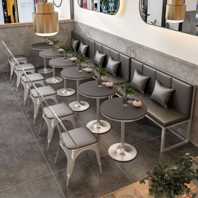 Nhà hàng công nghiệp phương Tây giản dị ghế sofa bằng sắt rèn ghế thẻ đơn giản quán cà phê quầy bar ăn uống tấm đá hình chữ nhật kết hợp bàn ăn và ghế