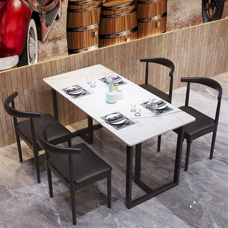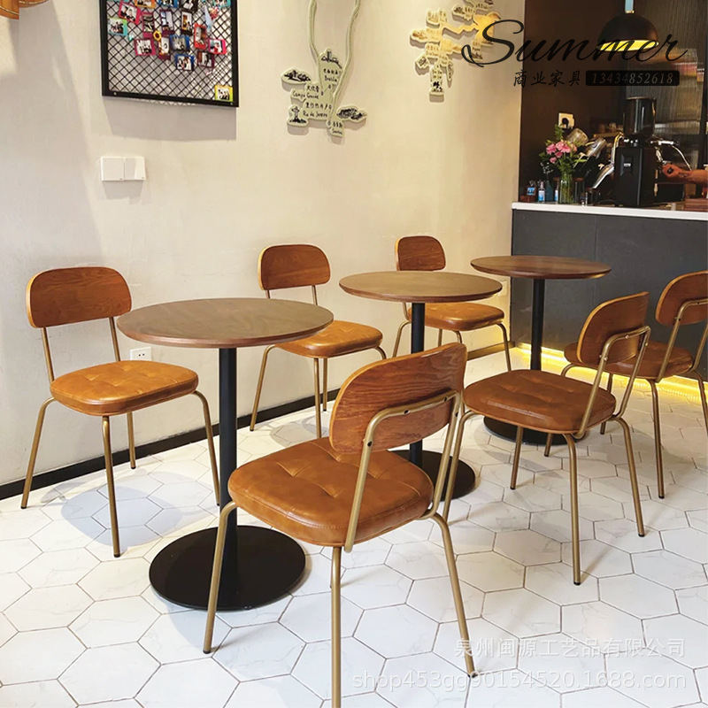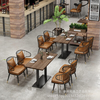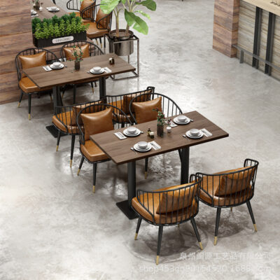 Nhà hàng công nghiệp sắt rèn gỗ nguyên khối bàn ăn và ghế kết hợp quán cà phê thẻ cổ điển ghế sofa Bàn ghế giải trí quầy bar kiểu Mỹ