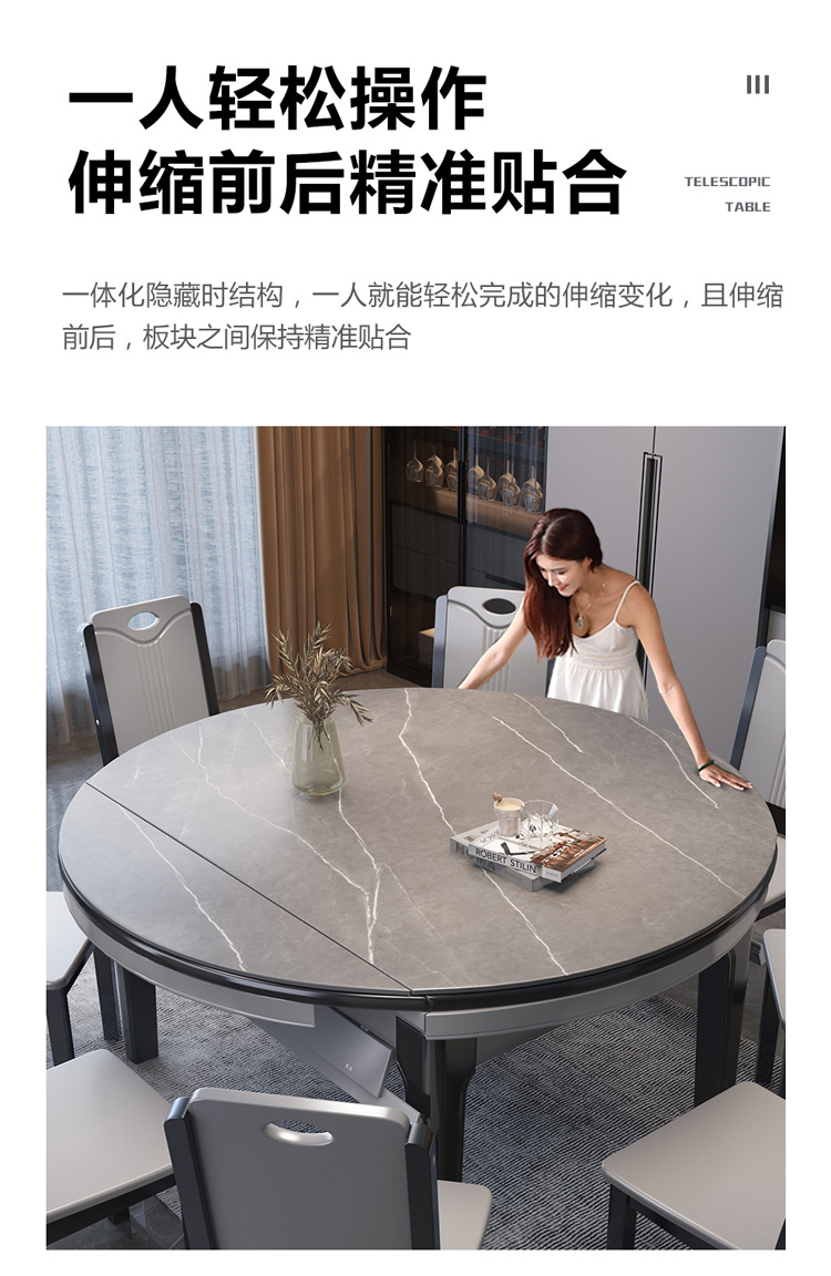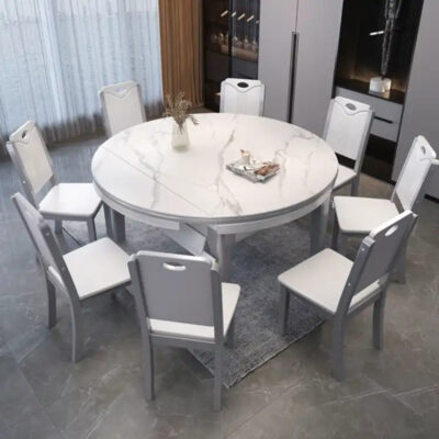 Nhà hàng kết hợp bàn ăn gỗ đặc và ghế 6-8 người nhẹ sang trọng phiến đá cẩm thạch có thể thu vào bàn ăn màu trắng đa năng có thể gập lại là sản phẩm nổi bật trong dòng bàn ăn nhập khẩu, thiết kế hiện đại và sang trọng, phù hợp với nhiều không gian nội thất cao cấp.