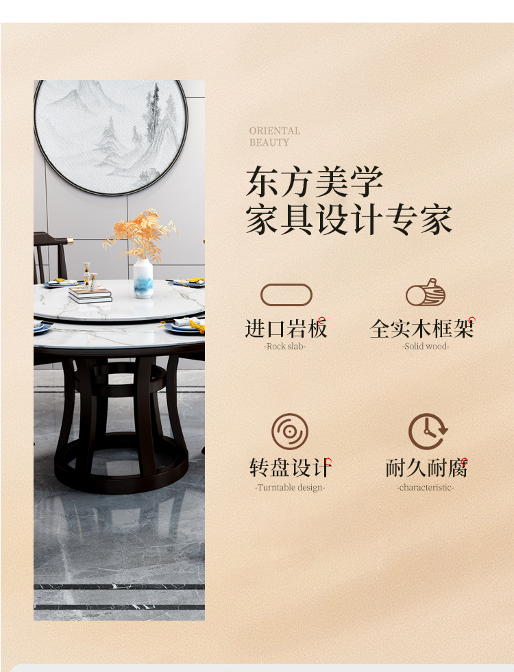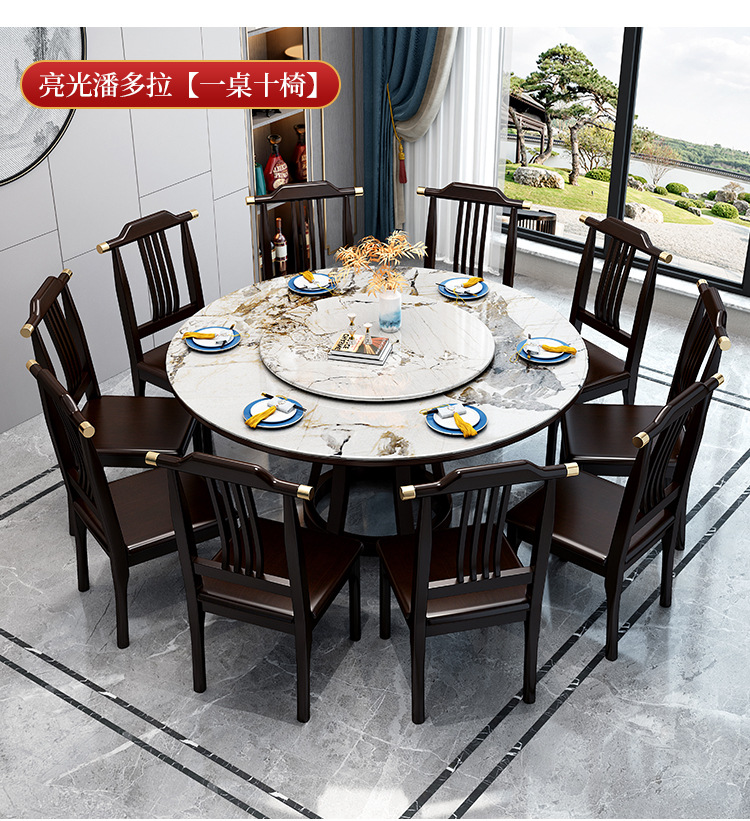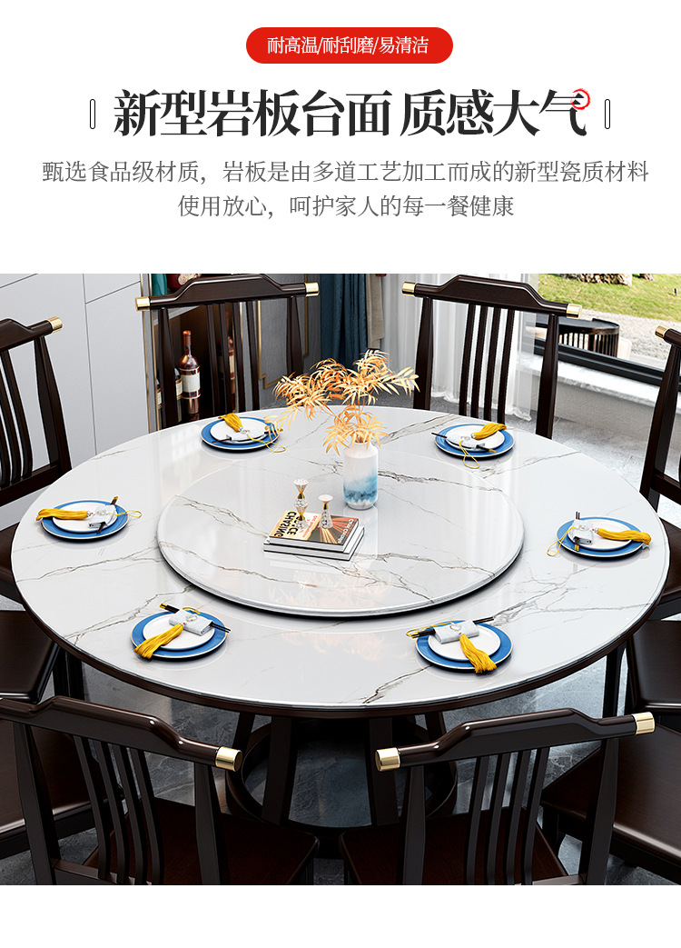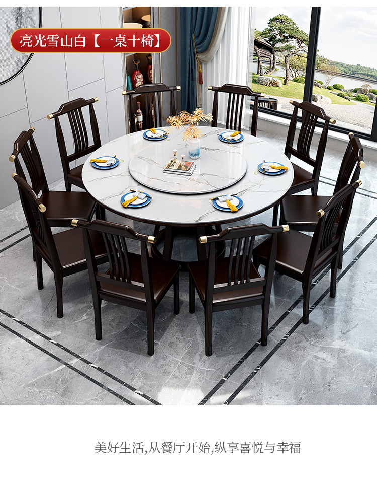Nhà hàng kết hợp bàn ghế đá kiểu Trung Quốc mới với bàn xoay tại nhà bàn ăn tròn nhà hàng khách sạn bàn tròn lớn – Bàn ăn nhập khẩu cao cấp