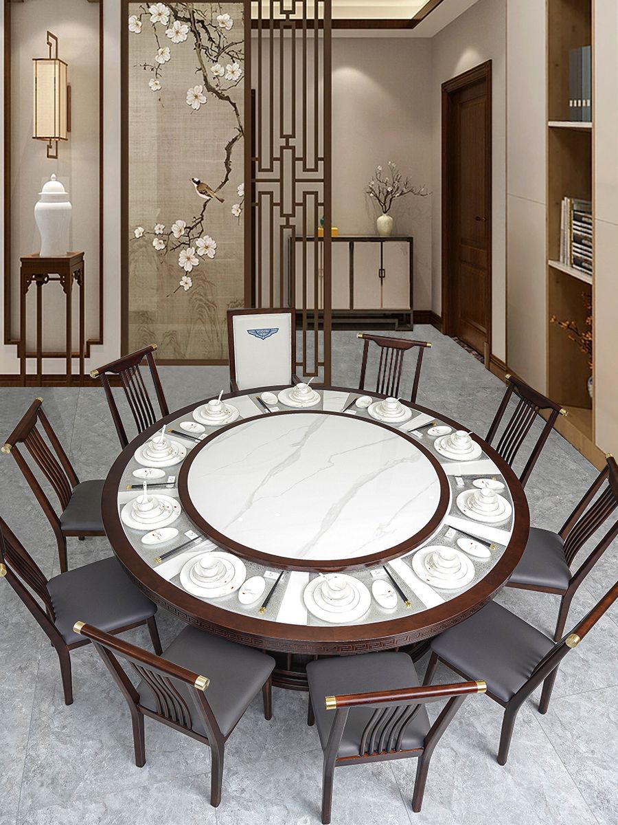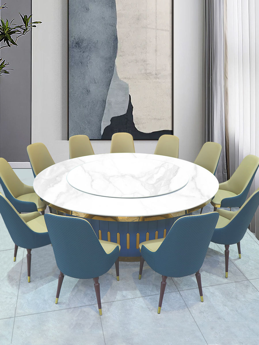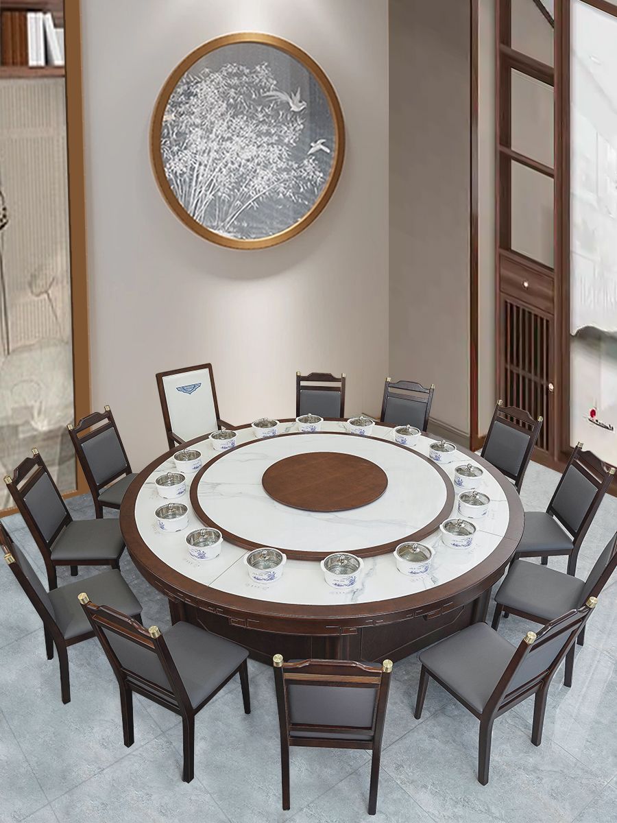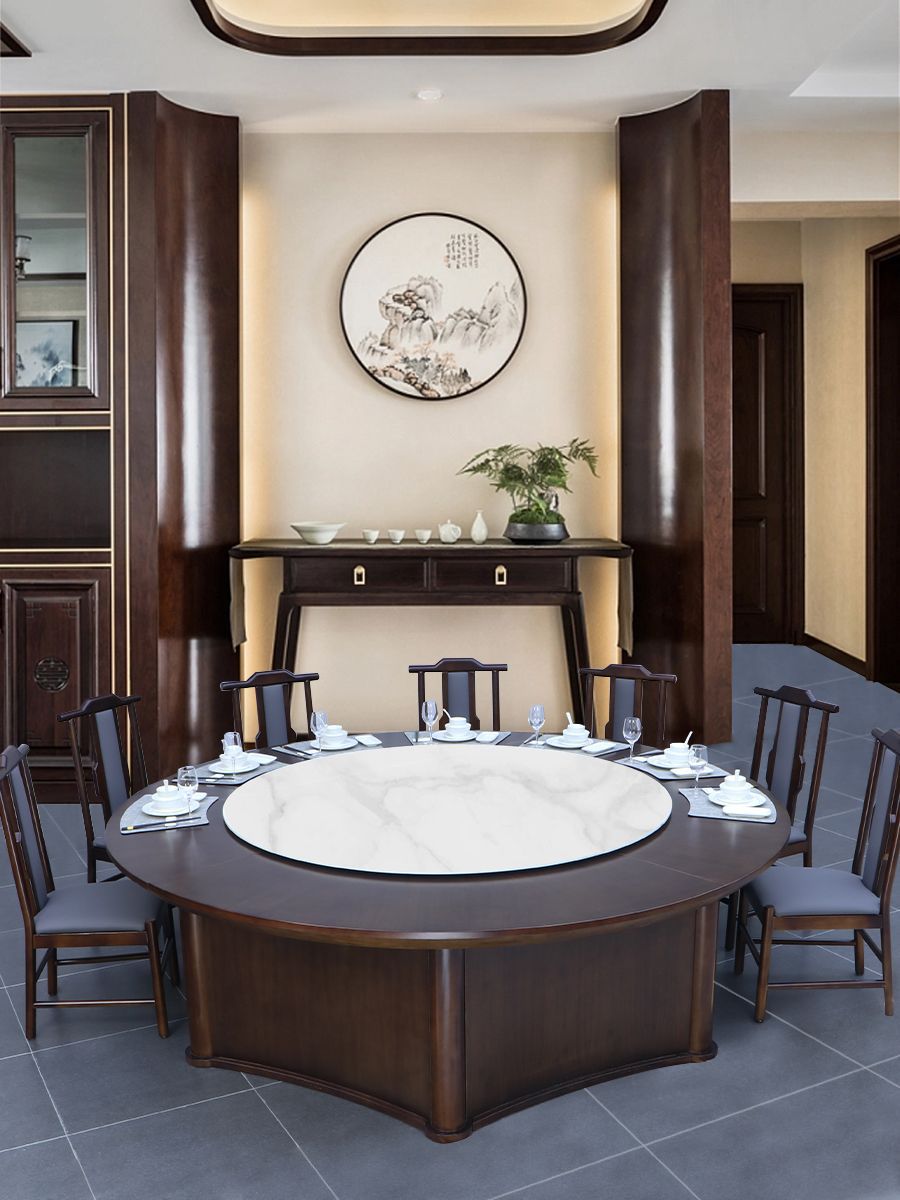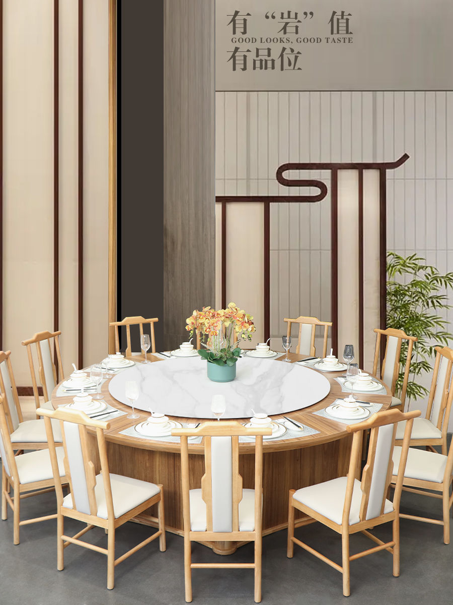 Nhà hàng khách sạn bàn ăn xoay bàn ăn tròn gia đình bàn tròn lớn 15 người 20 người bàn ăn điện tấm đá Trung Quốc mới