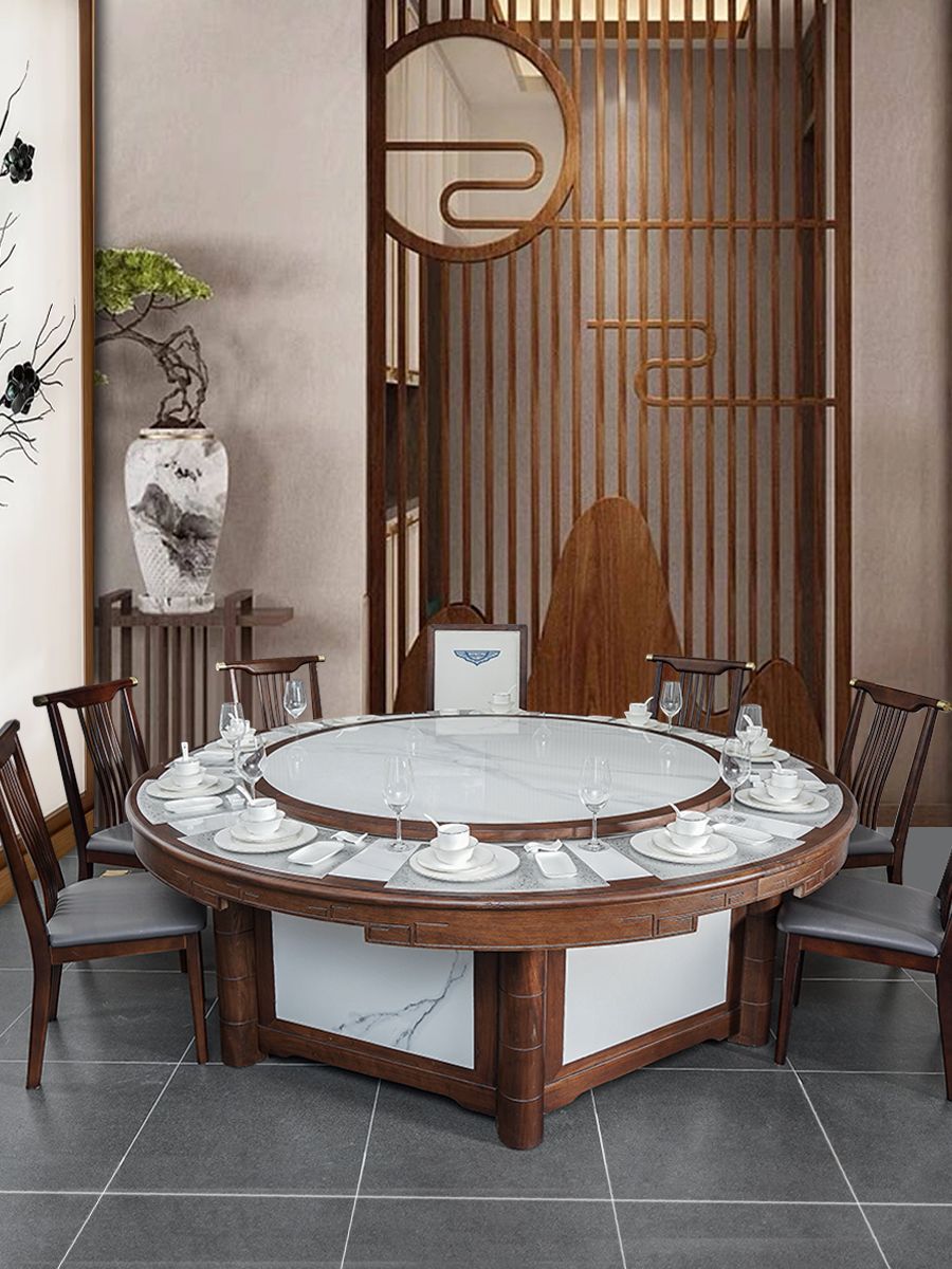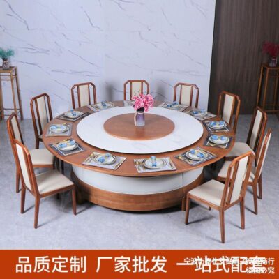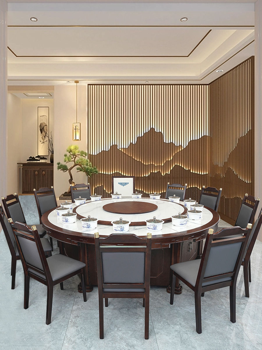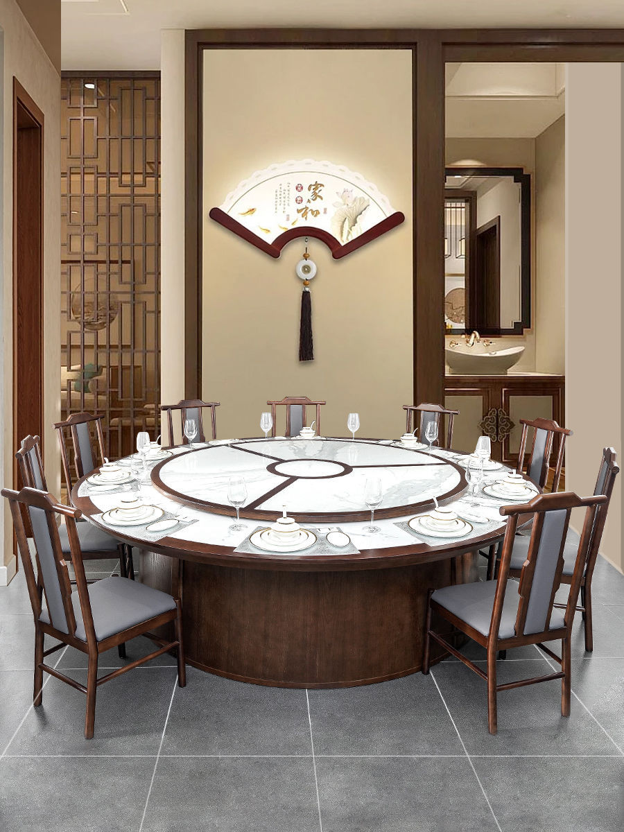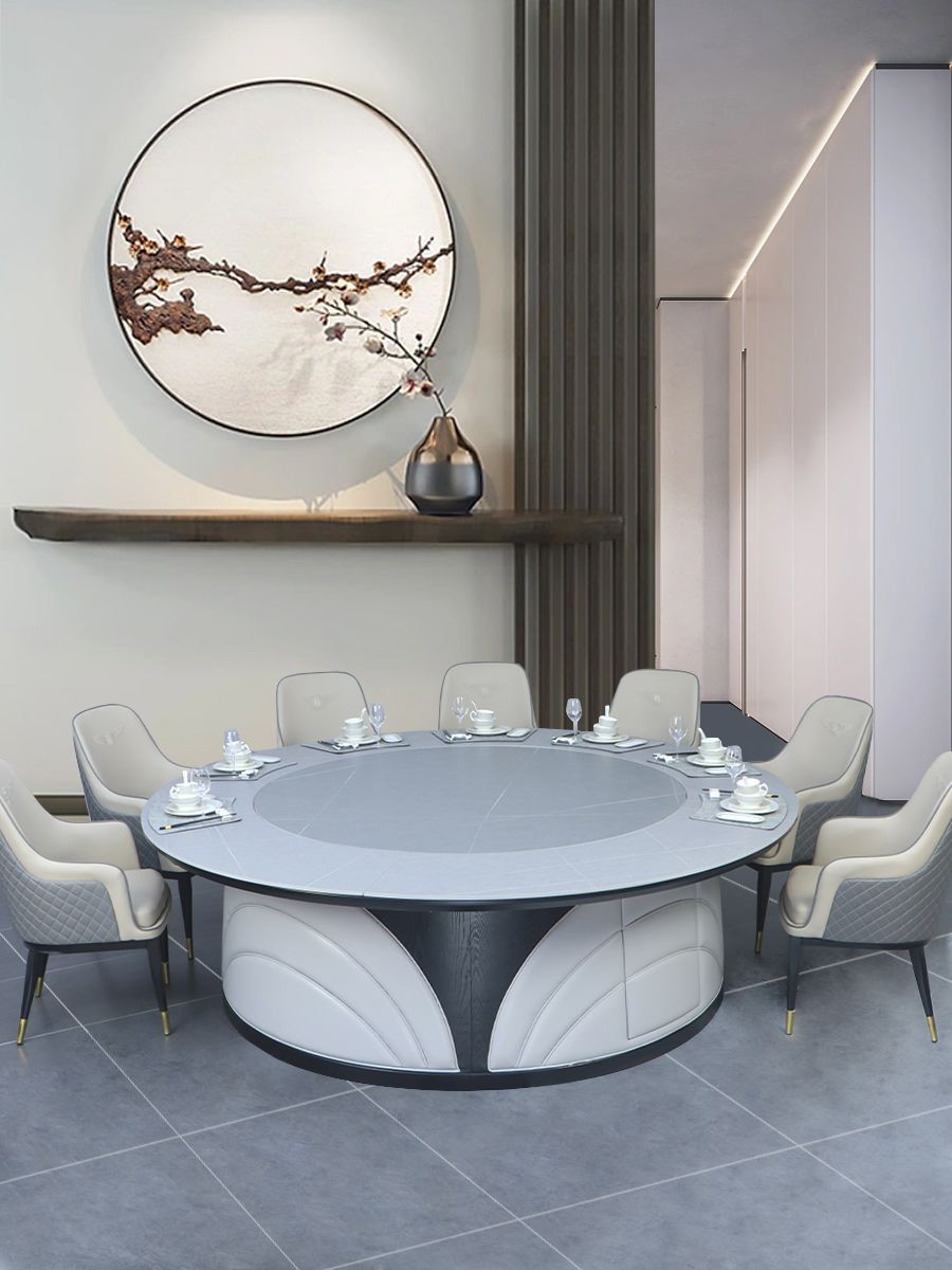 Nhà hàng khách sạn bàn ăn xoay bàn ăn tròn gia đình bàn tròn lớn 15 người 20 người bàn ăn điện tấm đá Trung Quốc mới
