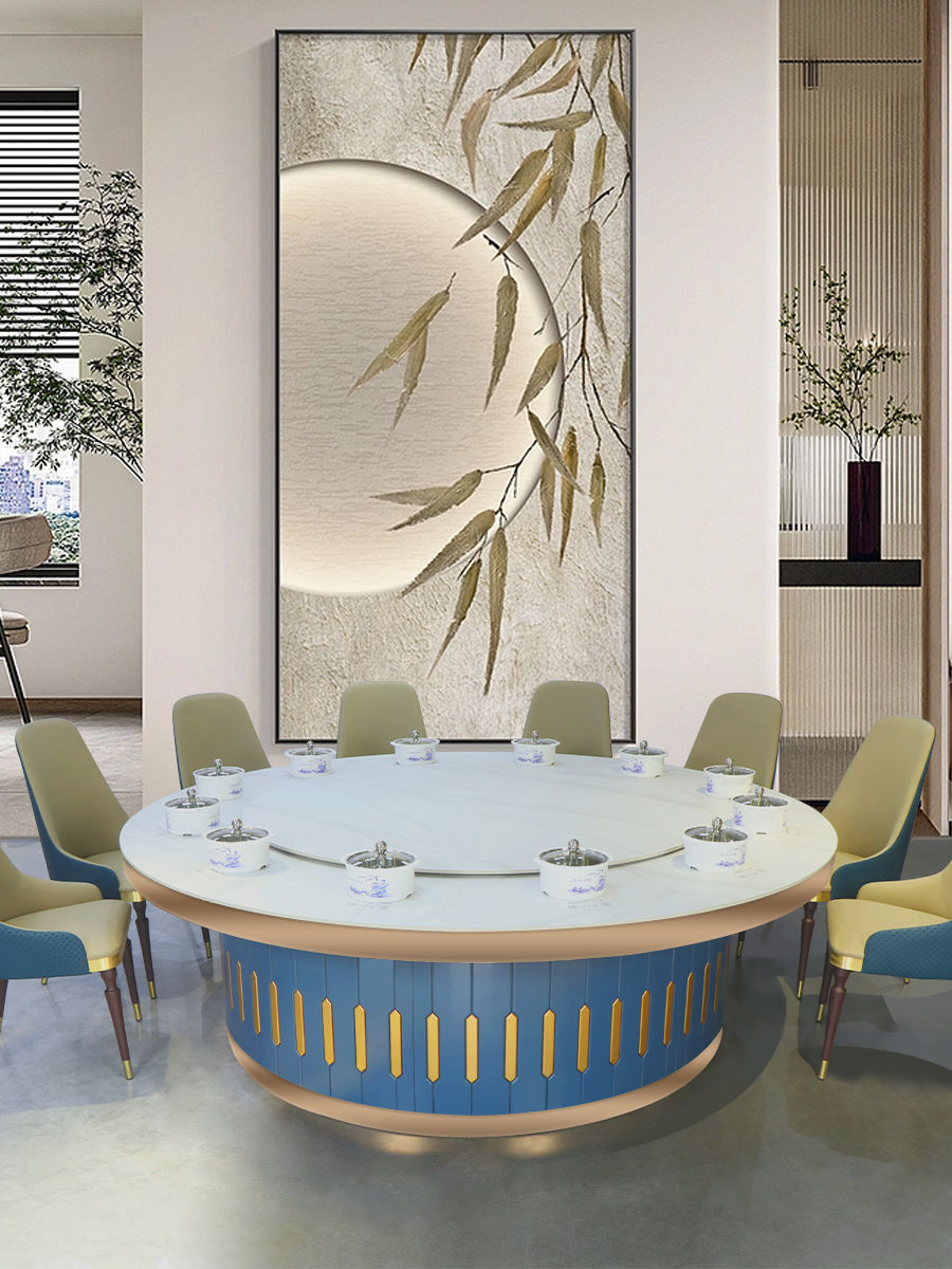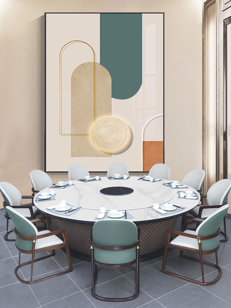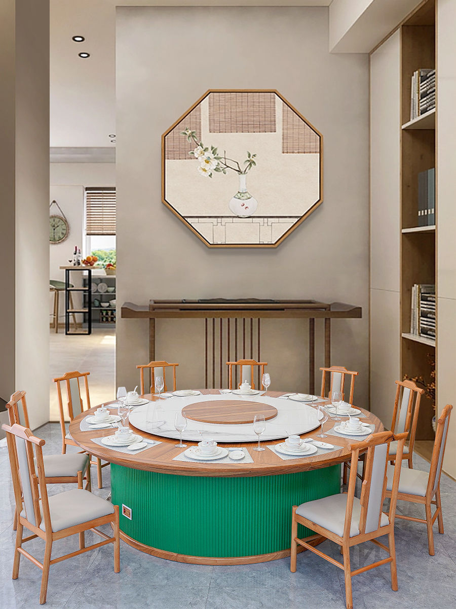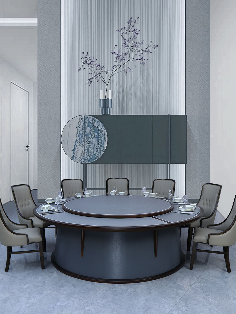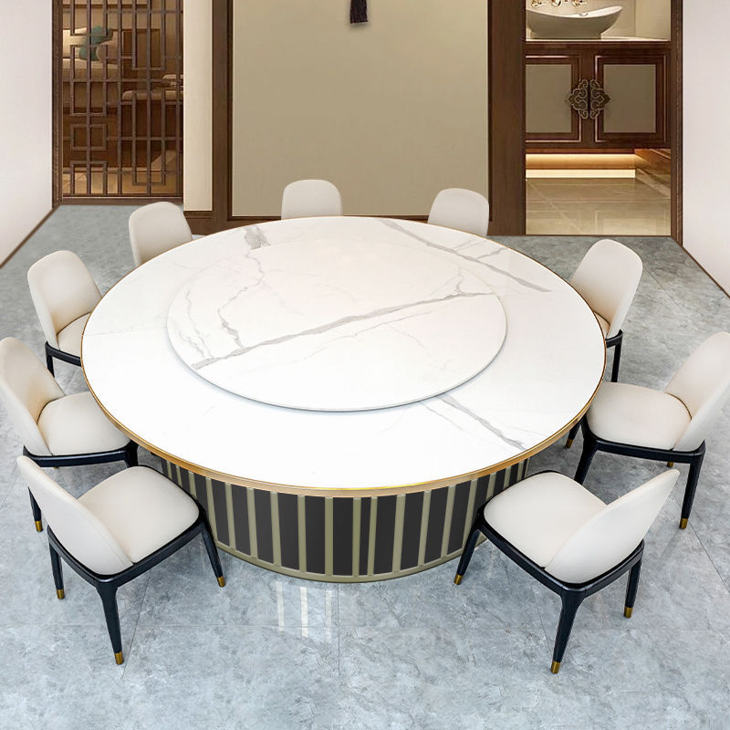 Nhà hàng khách sạn bàn ăn xoay bàn ăn tròn gia đình bàn tròn lớn 15 người 20 người bàn ăn điện tấm đá Trung Quốc mới