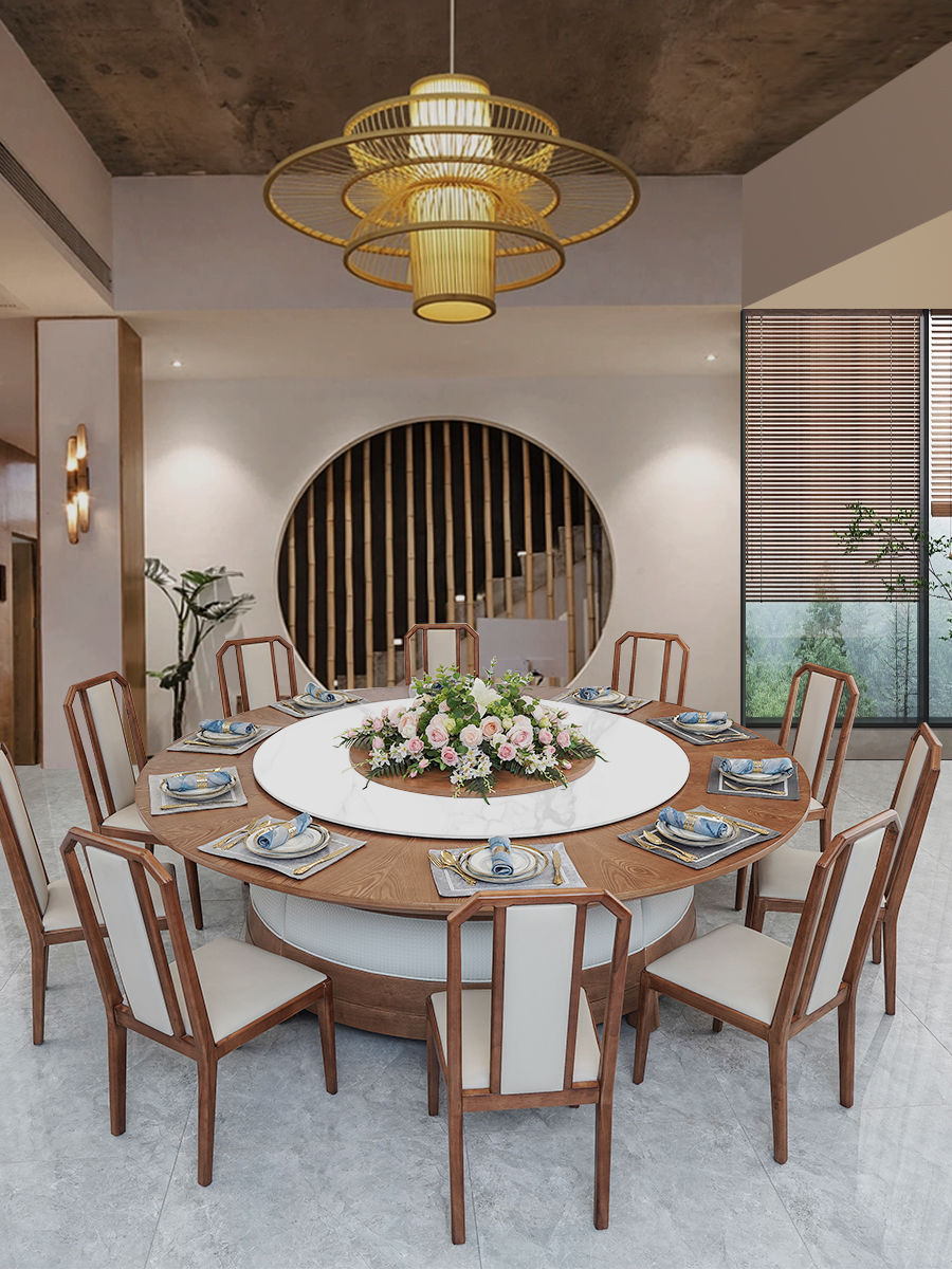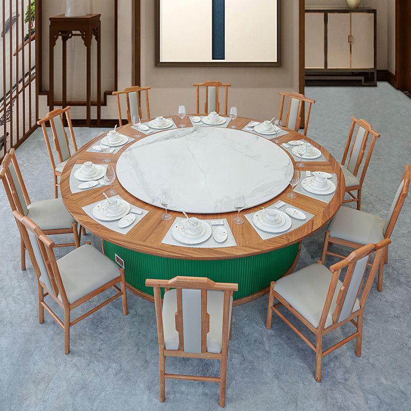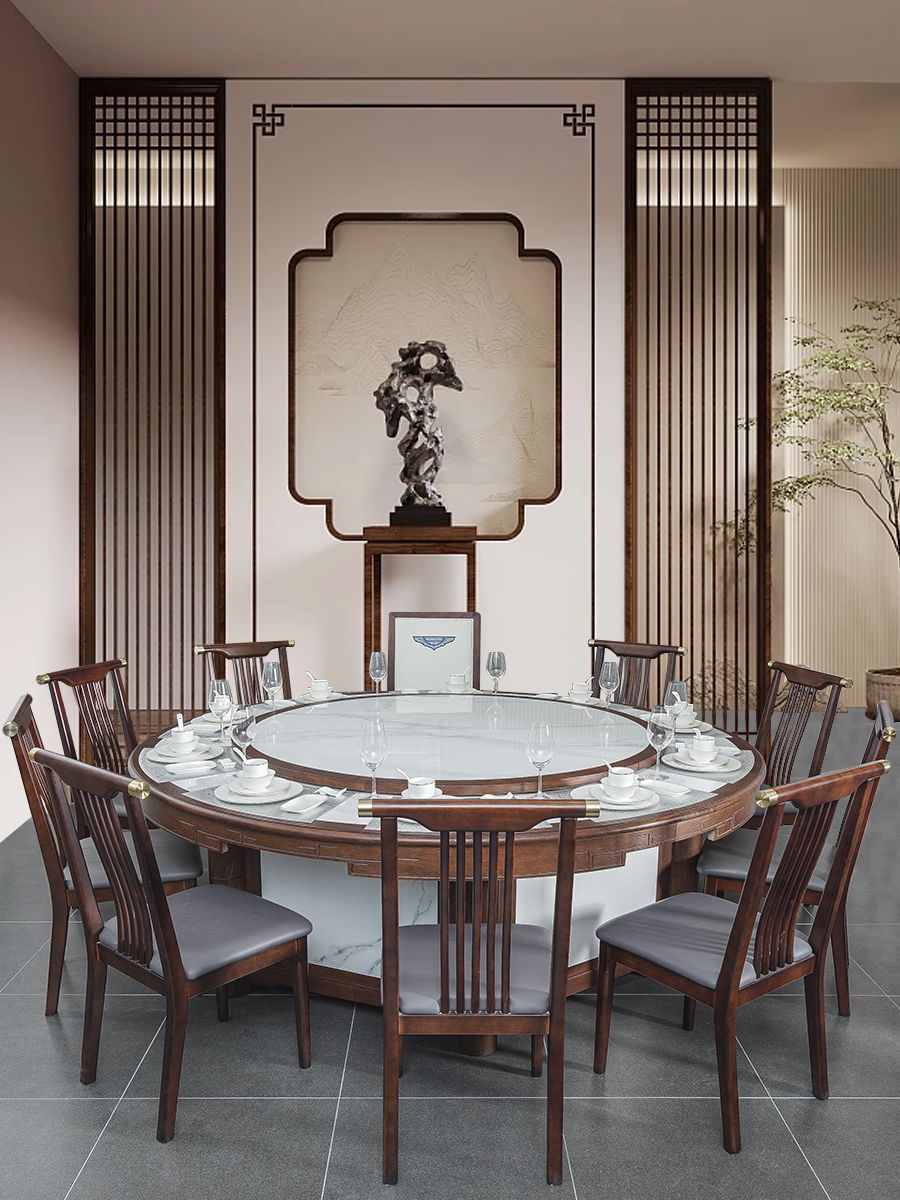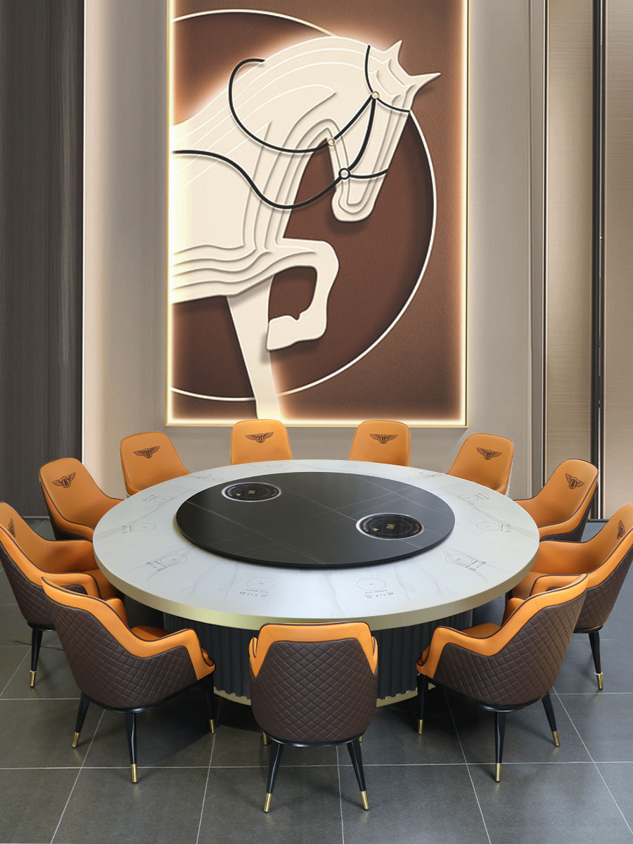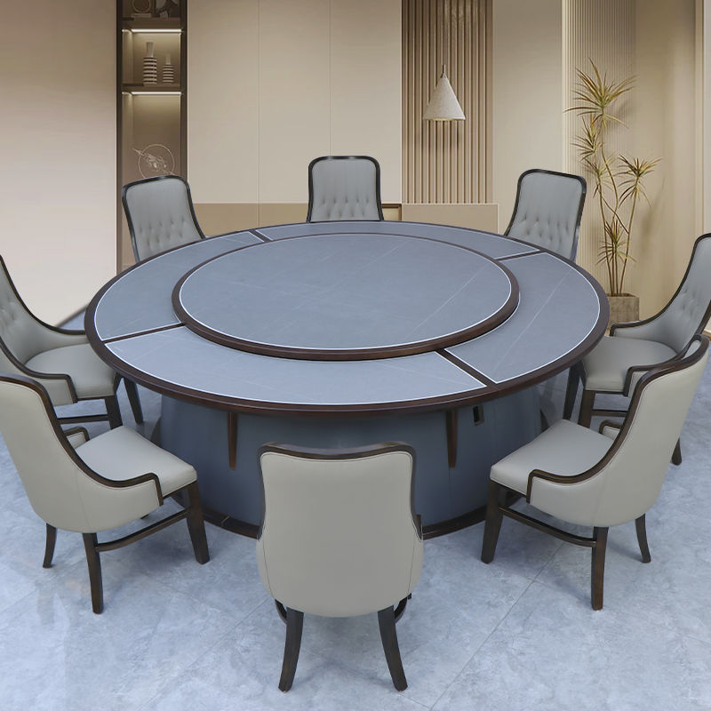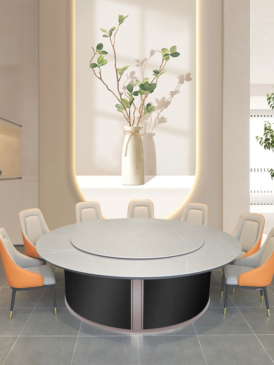 Nhà hàng khách sạn bàn ăn xoay bàn ăn tròn gia đình bàn tròn lớn 15 người 20 người bàn ăn điện tấm đá Trung Quốc mới