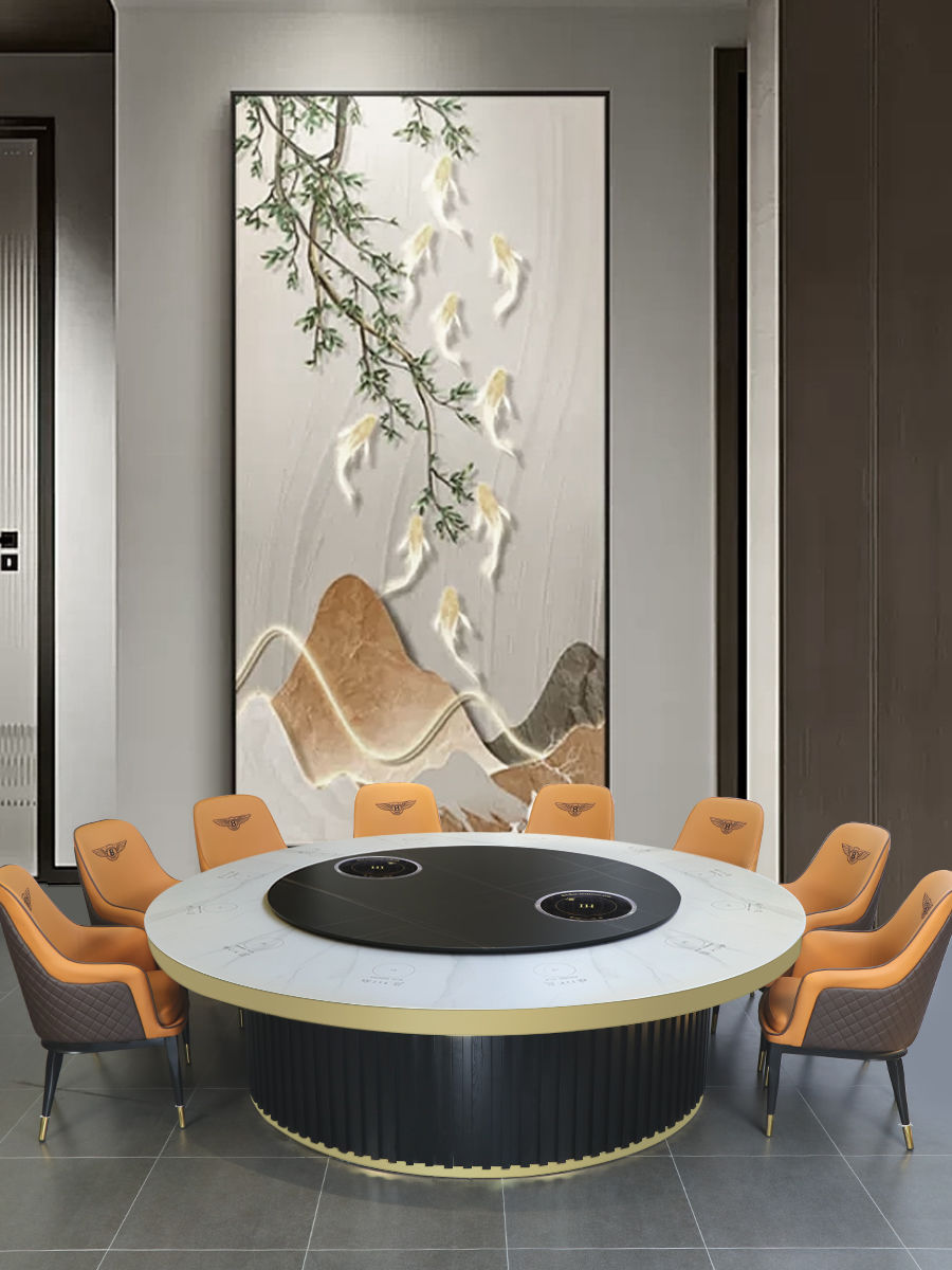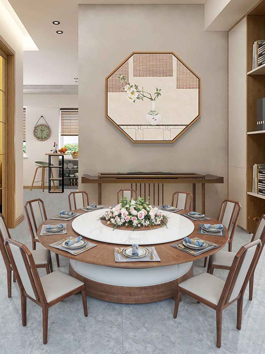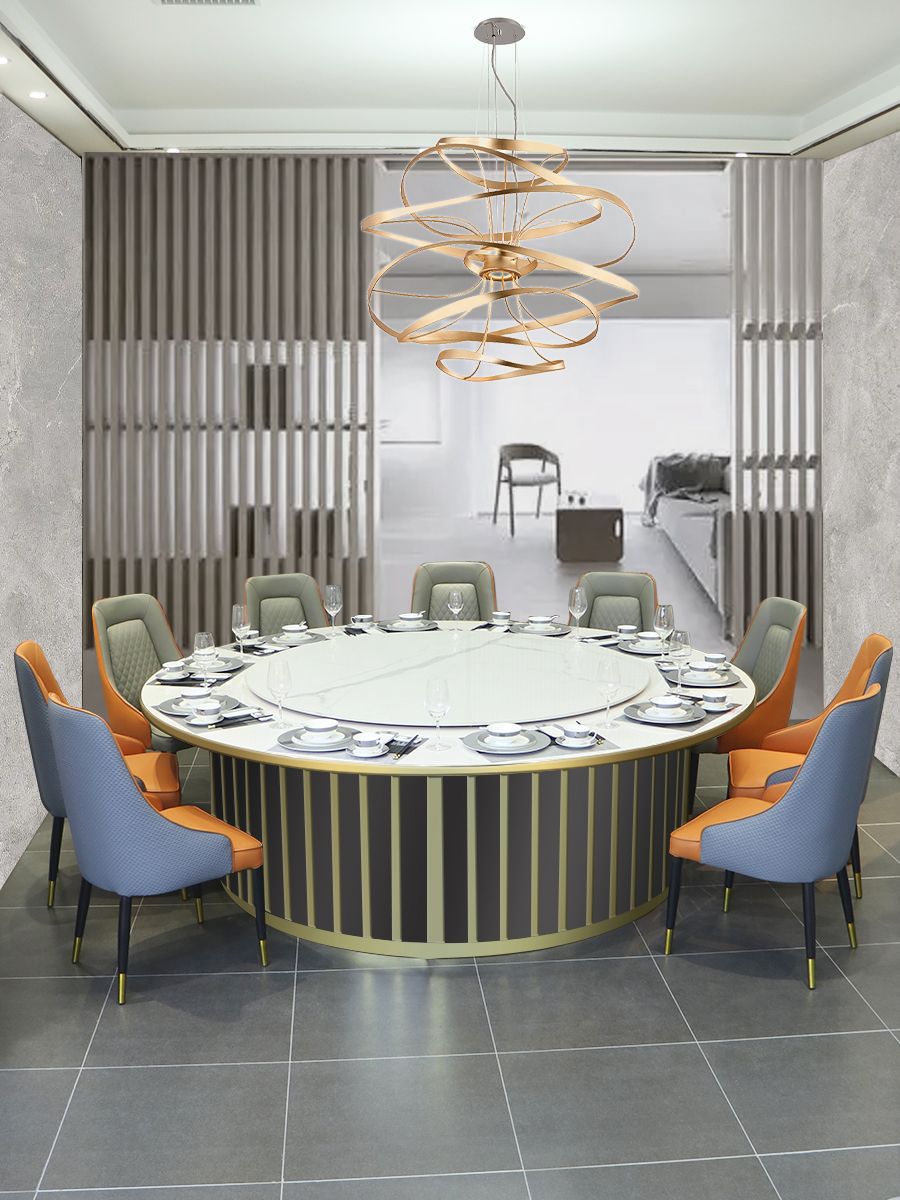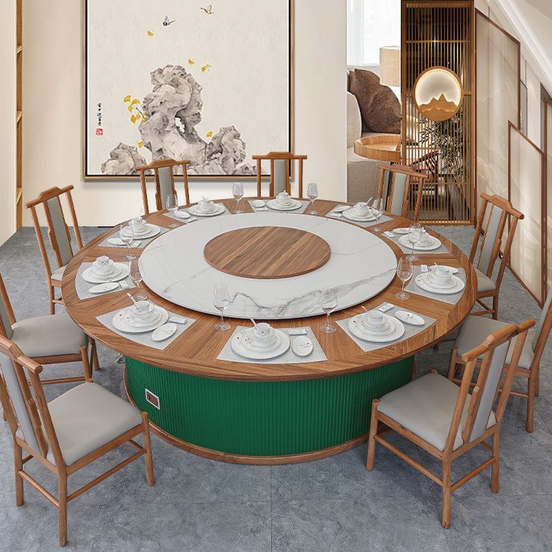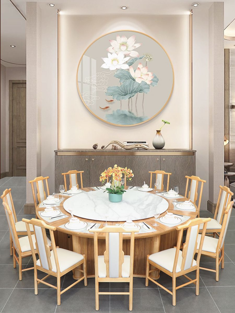 Nhà hàng khách sạn bàn ăn xoay bàn ăn tròn gia đình bàn tròn lớn 15 người 20 người bàn ăn điện tấm đá Trung Quốc mới