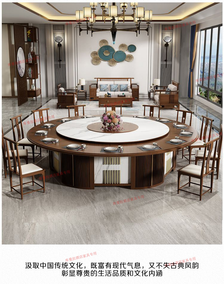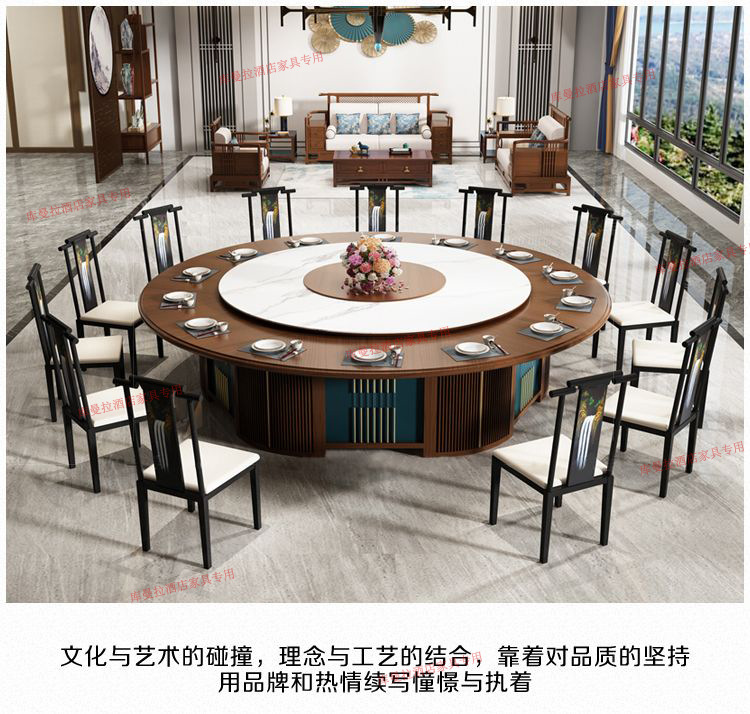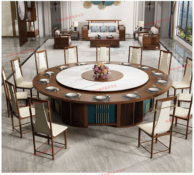 Nhà hàng khách sạn phòng tiệc hộp gỗ chắc chắn điện bằng tay bàn tròn lớn bàn ăn ghế ăn lẩu bàn 10 người 20 người – Bàn ăn nhập khẩu cao cấp